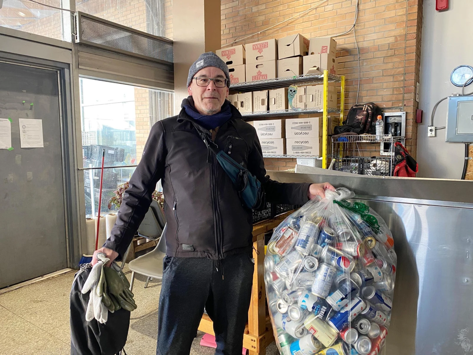 « Le gros du problème, c’est que quand c’est fermé, ici, on doit aller à l’épicerie. Mais quand ils nous voient arriver avec de grosses quantités de marchandise, ils ferment les machines. J’étais client depuis neuf ans de mon Métro, mais la journée où ils m’ont vu arriver avec des canettes, ils ne m’ont plus regardé de la même façon », confie Michel, 63 ans, qui combat les préjugés, une canette à la fois. « J’ai vécu l’itinérance quelques temps, et ça m’a aidé à ne plus être dans le jugement. On est tous égaux ici, peu importe les raisons pour lesquelles tu consignes des canettes », affirme Michel, qui louange la coopérative où l’on accueille les valoristes dans la bienveillance.
