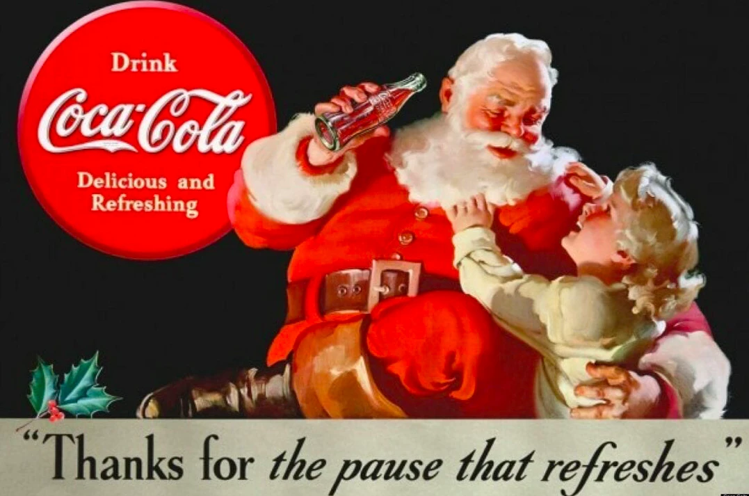 Il émigre en Amérique au 19e siècle, où il est présenté comme un vieux monsieur en manteau vert, bleu et finalement rouge, ou parfois comme un lutin dodu. Il devient alors Santa Claus. Mais c’est une campagne publicitaire de Coca-Coca au début des années 30 qui mettra au monde le modèle de père Noël actuel, blanc et dodu comme un honnête citoyen américain. Pour la petite histoire, l’illustrateur Haddon Sundblom s’est inspiré de sa propre bouille pour donner vie au personnage.