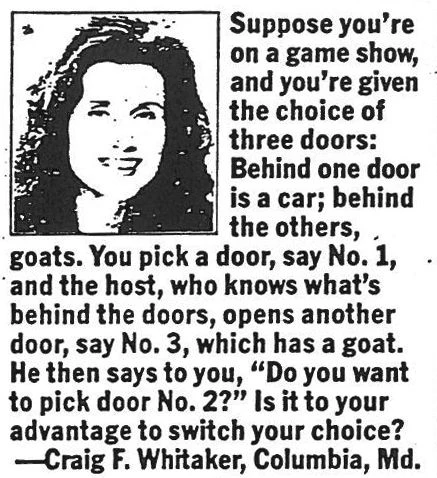 C’est là que ça devient intéressant. Le 9 septembre 1990, Marilyn vos Savant a reçu cette question :
