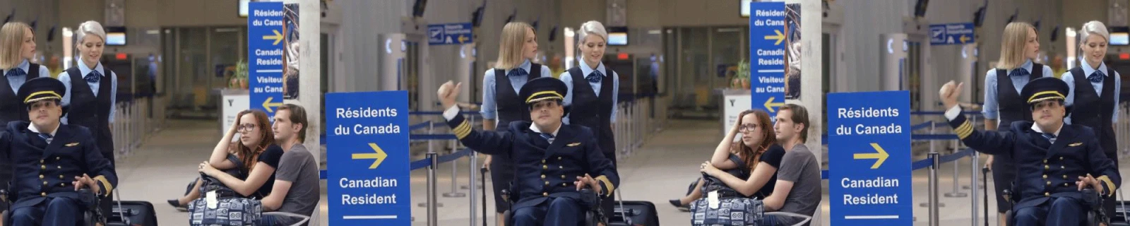 C’est un drôle d’adon : deux de mes amis attendaient patiemment à l’aéroport Pierre-Elliott-Trudeau, alors qu’un tournage de la série Gang de malades avait lieu. Ils ont été sélectionnés comme figurants, pour un de ces sketches qui mettent en scène des personnes handicapées.