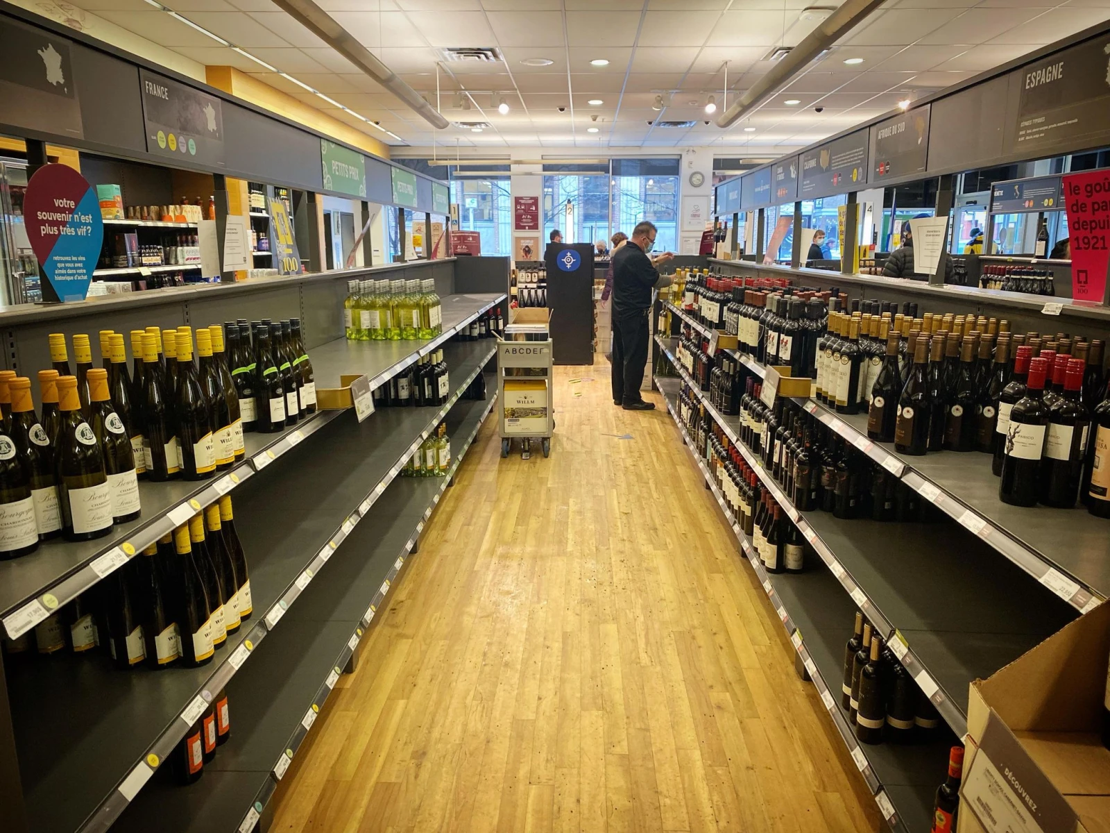 « Ça me rappelle le papier de toilette », souligne une cliente perspicace derrière nous, qui a mis des mots sur une impression qu’on a tous et toutes en tête en posant le pied dans une SAQ ces jours-ci.
