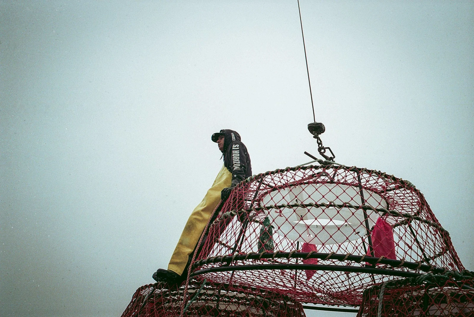 Nous quittons malgré les caprices du climat. Lorsqu’aucune rive n’est visible, que le crabier vogue dans une solitude sans mer ni ciel, c’est nous qui sommes en cage. En jetant les casiers dans l’inhabité, on ne croise nul bateau, mais le vol agité de petits guillemots.