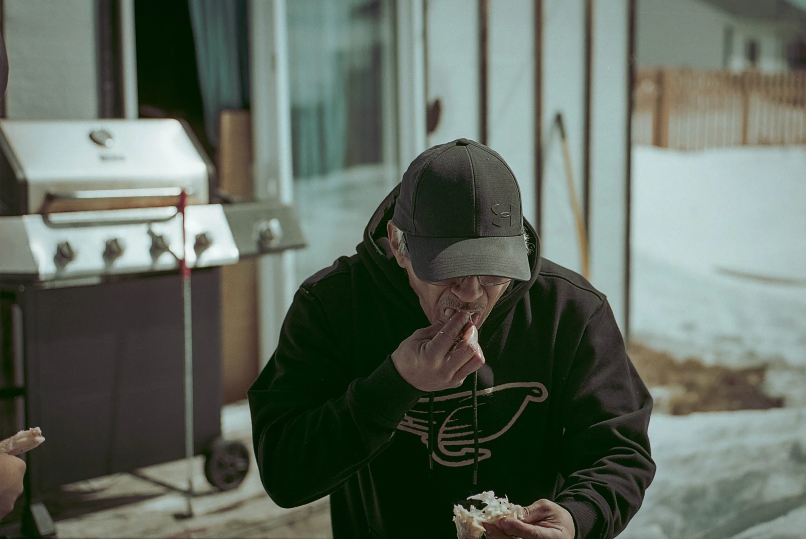 De retour à Uashat, cette fois pour le grand festin dominical de Pâques avec toute la famille. On craque des pattes à s’en défaire les mains au son de la radio chrétienne. Voisin.e.s, cousin.e.s, tantes et ami.e.s viennent tous et toutes commenter nos prises que l’on prépare à la vapeur salée, assaisonnée de cannabis et de cette langue chantée qui se conclut toujours en rires.
