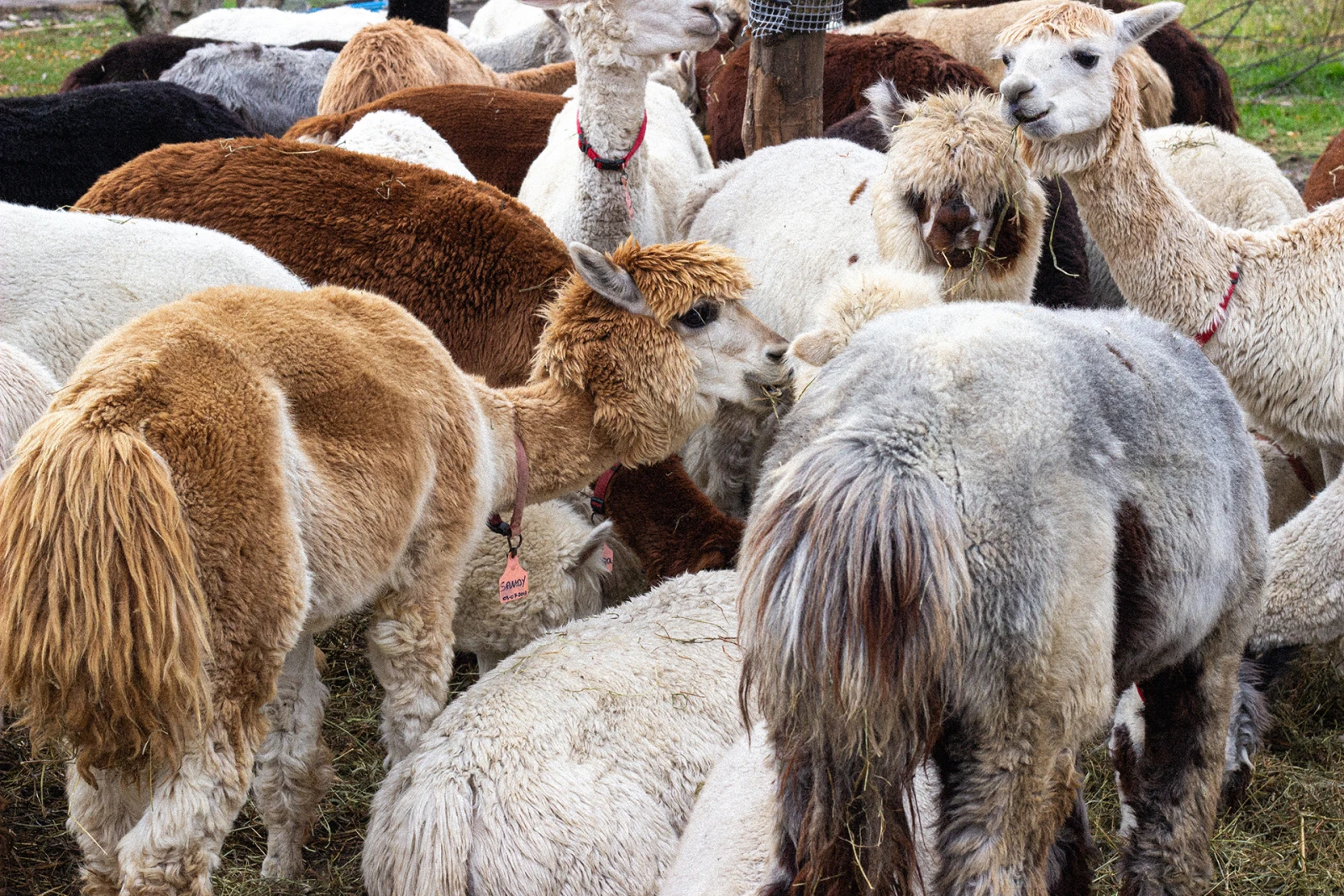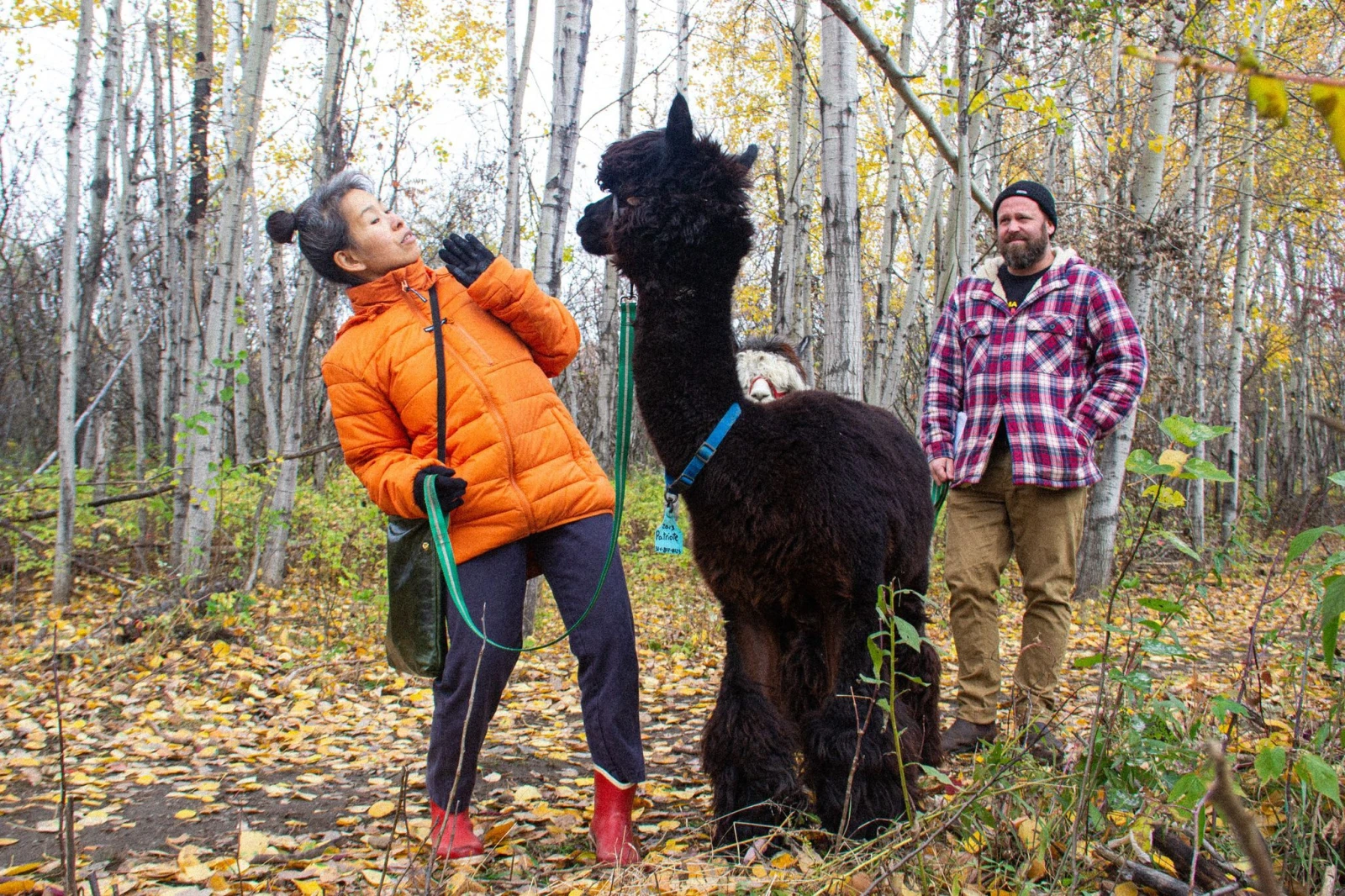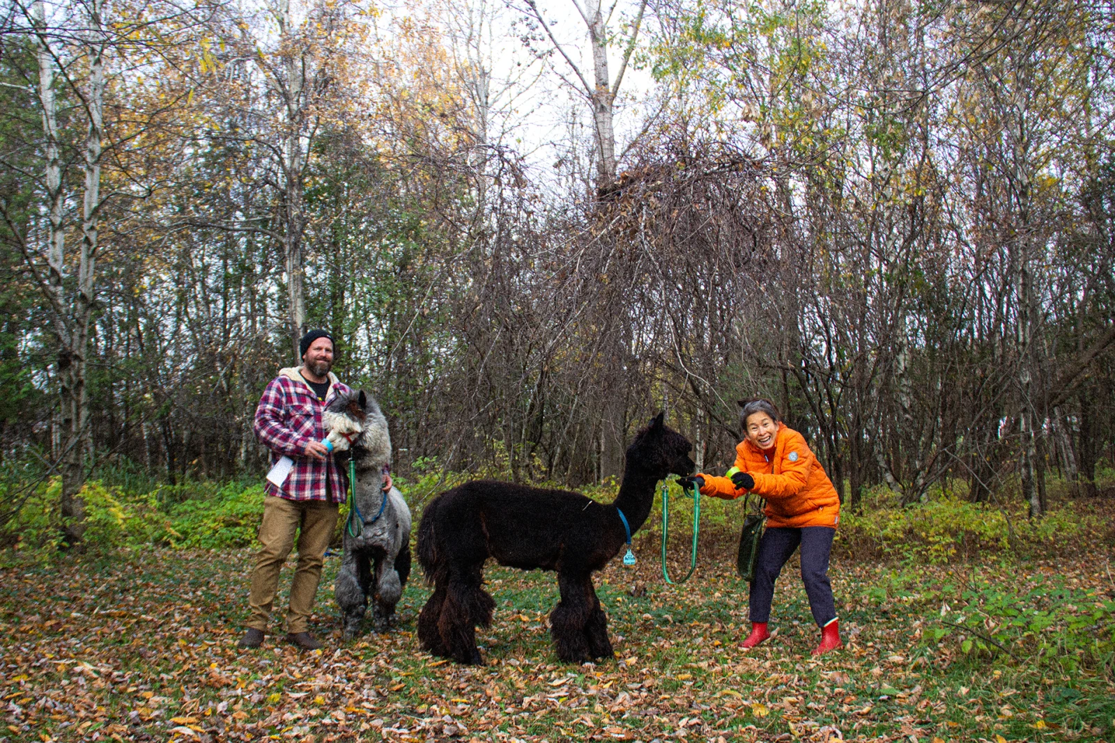 « J’ai commencé à en élever il y a huit ans après un coup de foudre. J’en ai 120 et je connais leur nom à tous », raconte des étoiles dans les yeux Natacha. Les alpagas, c’est son truc à elle, mais son mari et quelques employés à temps partiel l’aident pour l’entretien de la ferme. « J’ai trois enfants, mais ils n’ont pas vraiment d’intérêt. Mon plus vieux veut même pas de chien ni de chat », soupire Natacha, qui ouvre ses portes aux visiteurs chaque semaine pour leur permettre de se promener dans les sentiers boisés avec un alpaga en laisse.