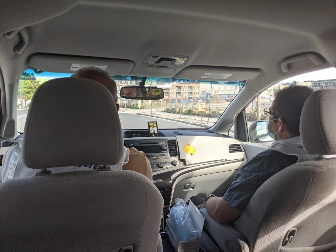 J’embarque dans la van blanche avec Jeannot et Serge en direction du premier de leurs onze arrêts de la journée : l’Hôpital chinois. «Il y a des petites lingettes pour désinfecter ton banc et la poignée de porte», me lance Jeannot. Même à l’intérieur du véhicule, l’escouade anti-germes est à l’affût.