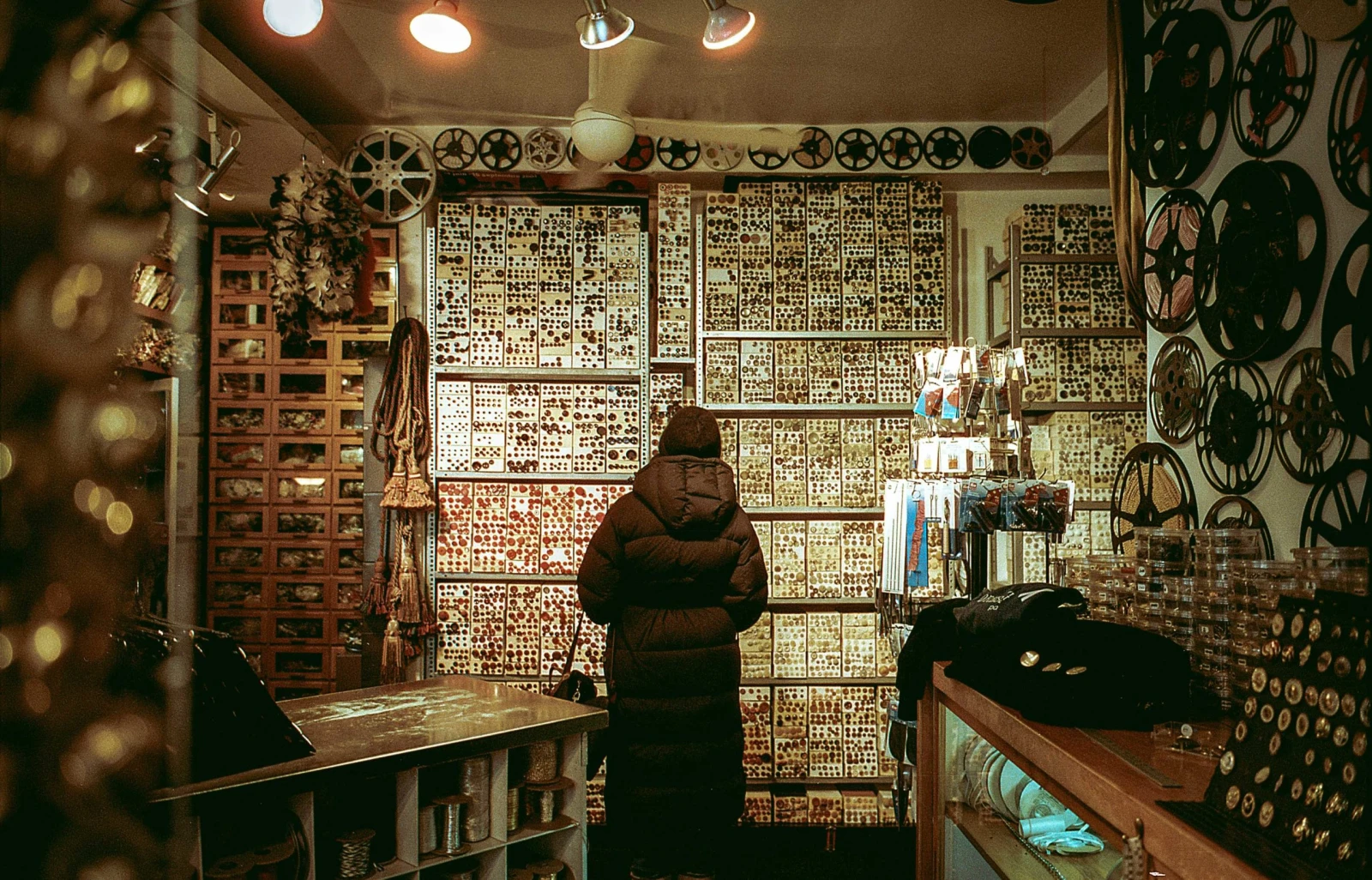 Les clochettes de l’entrée déclenchent leur mélodie à chaque nouveau client. Un itinérant nous interrompt pour demander un café tandis qu’une amie quitte. « Tu m’appelles pour aller prendre un verre! », est envoyé entre les plumes. Occupée par une commande, Juliette me fait signe de patienter tout en m’appelant par un mauvais prénom. Un lot de boutons tombe au sol. De la caisse vintage retentit un cliquetis. Et dans toute cette décoration bohème règne un délicieux parfum de bazar.
