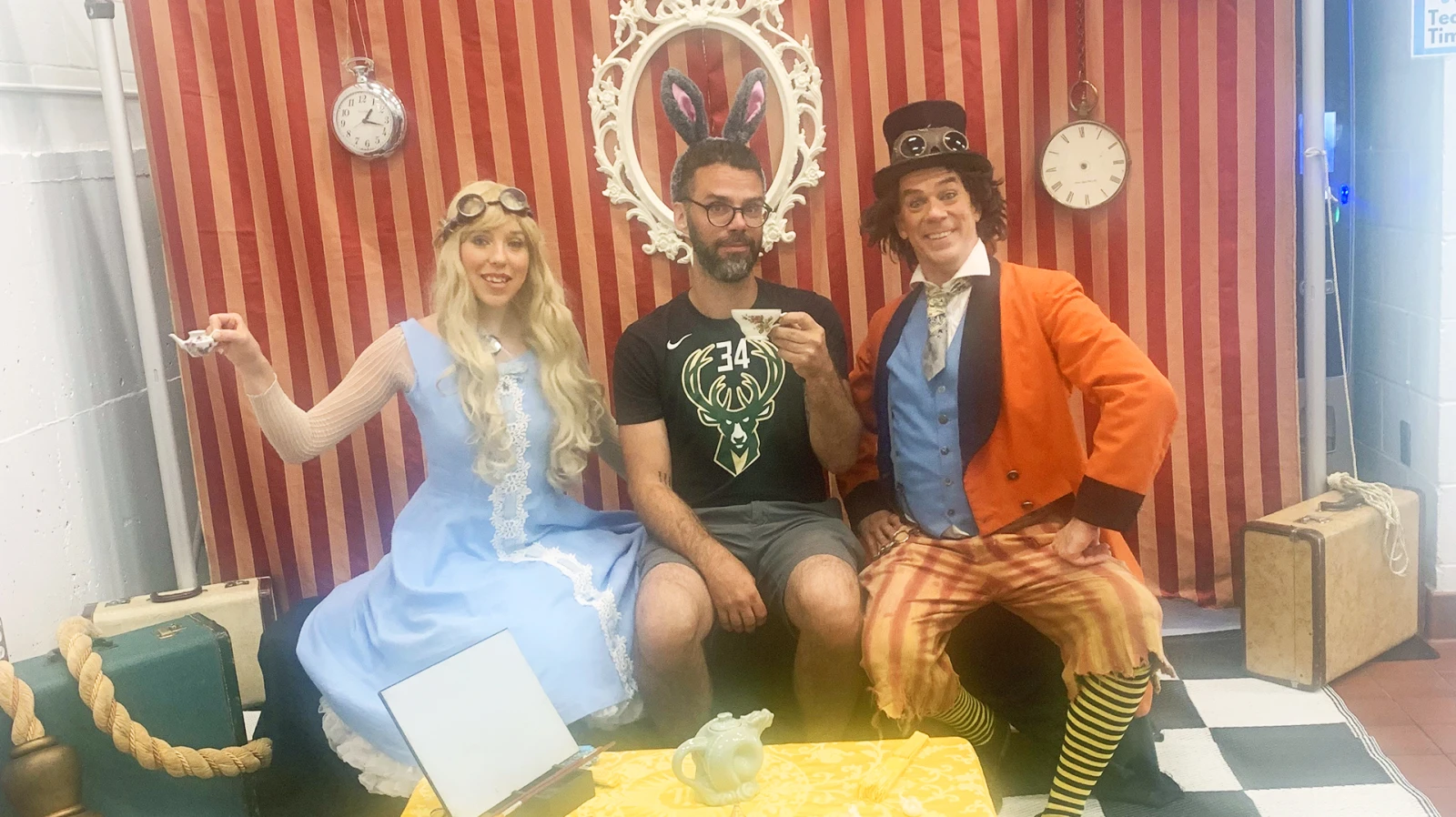 À l’entrée, Gerry Boulet s’époumone à chanter Le blues me guette dans un haut-parleur. Deux personnages d’Alice au pays des merveilles préparent une activité photo intitulée « Tea Time ». Le Québec et la reine d’Angleterre sont invités au même party, aujourd’hui.