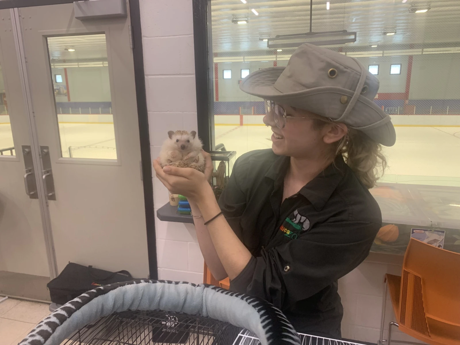 Deux jeunes femmes présentent une série d’animaux exotiques à un auditoire principalement composé d’enfants entre 6 et 8 ans. L’une d’entre elles m’explique que le hérisson qu’elle tient dans ses mains est inoffensif dans un contexte domestique, mais qu’il possède la capacité de tuer des animaux venimeux et de s’enduire les pics de leur poison afin de se défendre contre des prédateurs. Elle est cute la petite Stella, mais il ne faut pas niaiser avec.