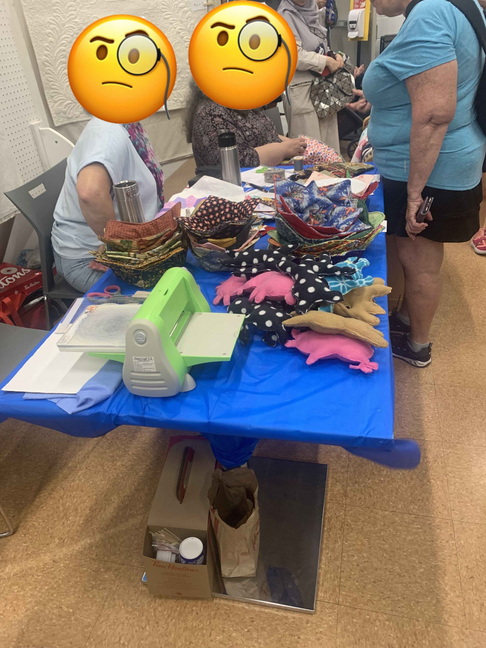 Aujourd’hui, le centre récréatif accueille toutes sortes de kiosques : de la peinture, du crochet et une forme d’artisanat mystérieux que je qualifierais de « gogosses du salon des métiers d’arts ». J’en achèterais bien un pour mon chien, mais il passerait à travers en six minutes et demie.
