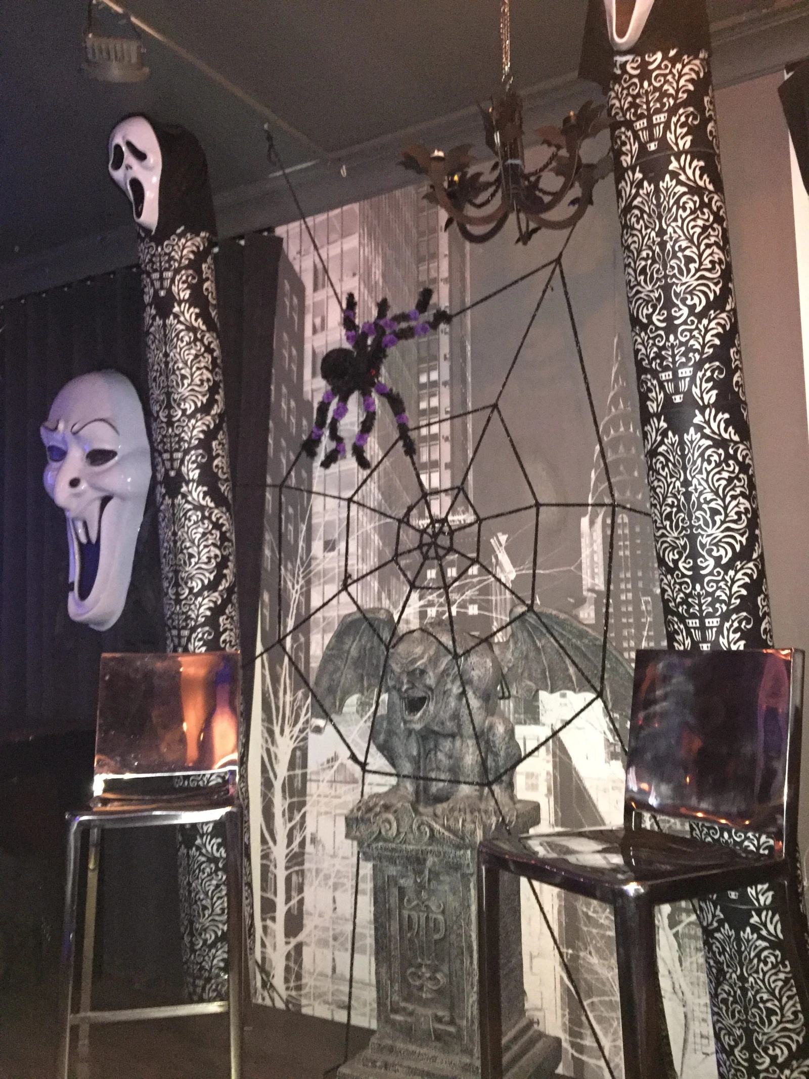 En cette avant-veille de la Fête des morts, les décorations horrifiantes sont légion au bar Rocky.
