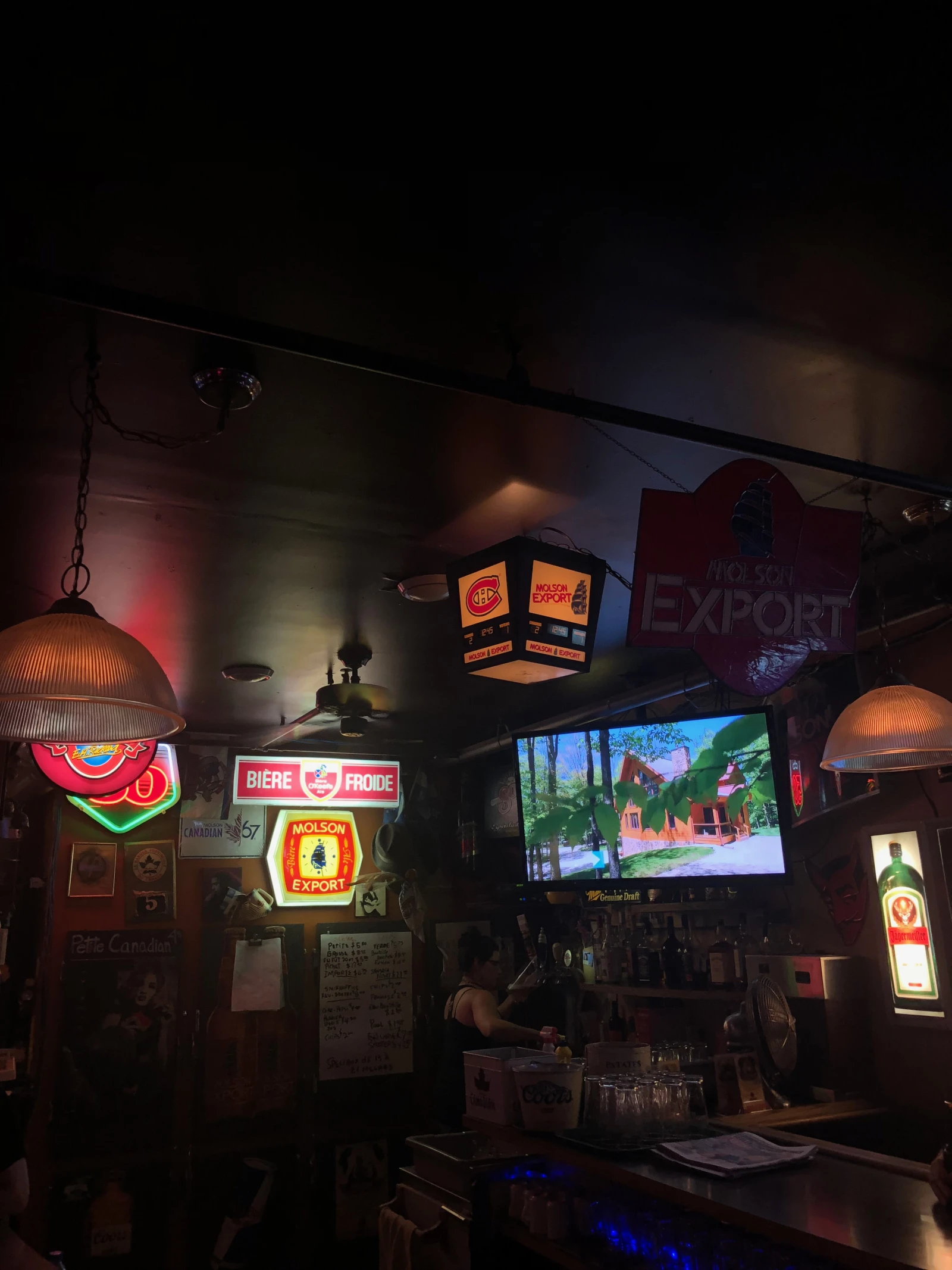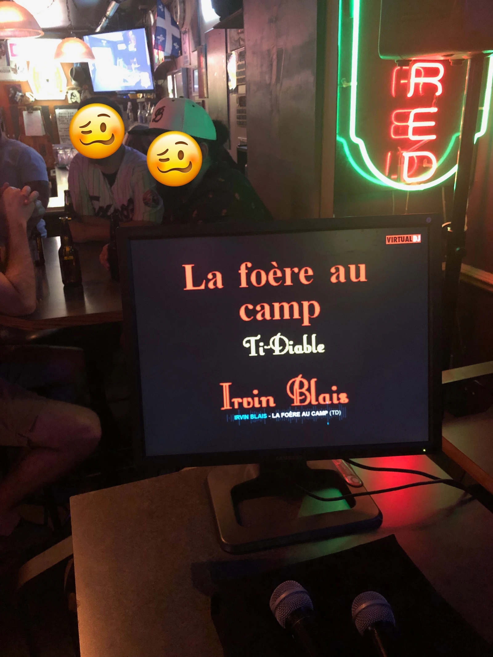 Assez d’extrême-droite pour ce soir, nous entrons finalement dans le vif de l’action. D’emblée, le Ô Saint-Fred semble être un bar d’habitués de la place, à voir les nombreuses interactions que plusieurs personnes assises à des places différentes ont ensemble. Le genre d’endroit où la barmaid sait ce que tu prends et où c’est normal d’entendre les mêmes personnes chanter les mêmes tounes à chaque vendredi au karaoké.