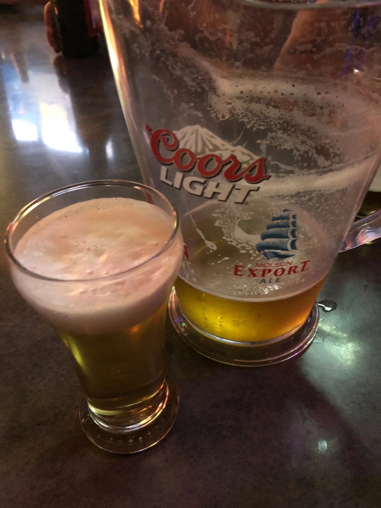 Encore abasourdis par la laideur manifeste du dessin ignoble, nous sortons des toilettes avec l’envie de retourner boire au plus sacrant. Et c’est pour cette très bonne raison que nous oublions carrément de demander les options alimentaires à la serveuse. Même si on se doute bien que celles-ci devaient se résumer à chips, gommes et peanuts, alias les trois groupes alimentaires standards de la taverne, nous devons jouer franc-jeu et ne pas évaluer ce critère.