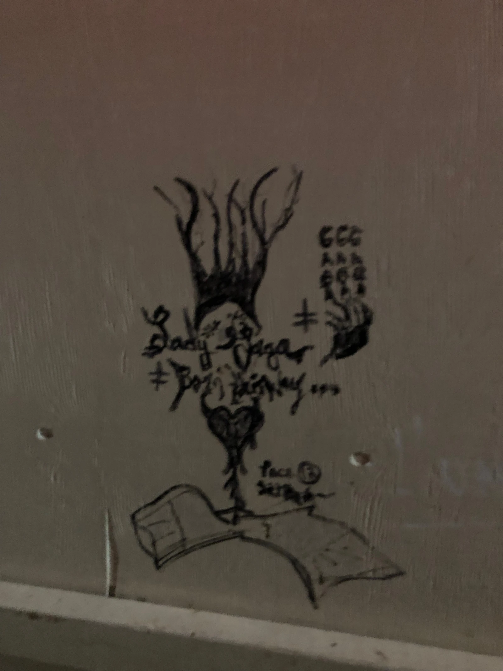 En allant vers le chemin du soulagement, nous arrivons dans ce qui semble être un corridor de débarras. En jetant un oeil vers le plafond, nous découvrons que l’équipe du bar est prête à tout moment à décorer la place pour célébrer la Saint-Fred.