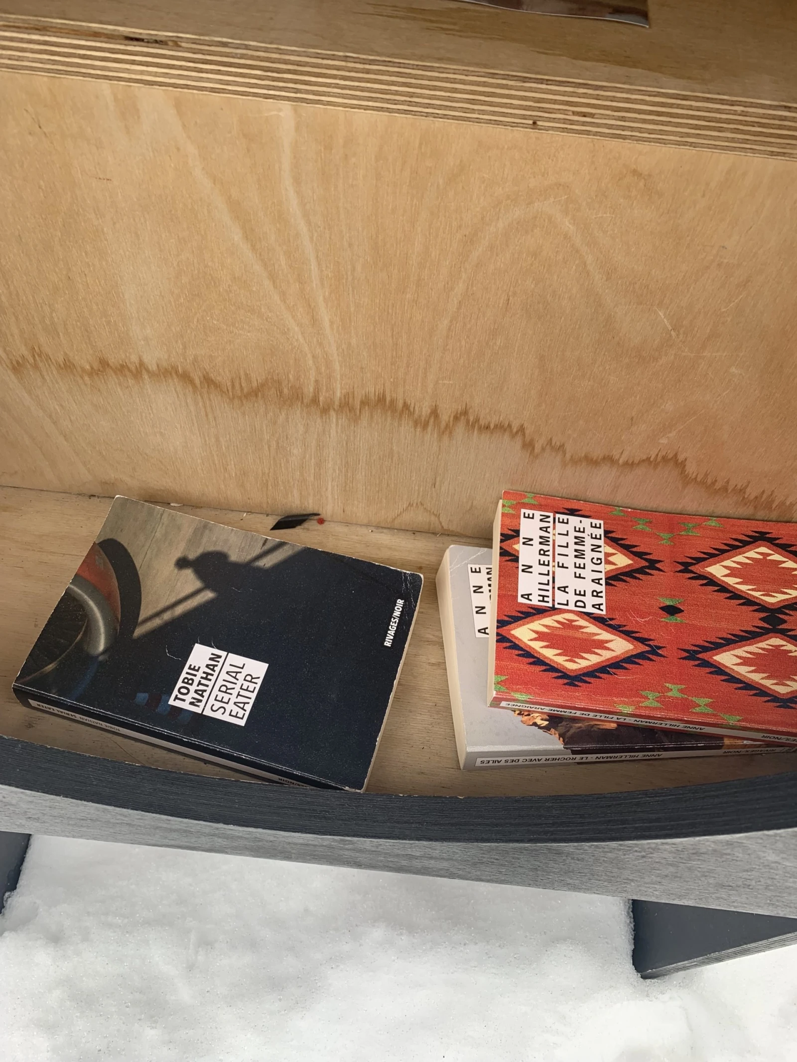 On s’est donc mis à se départir de plusieurs livres. Notre règle d’or est simple : si on ne croit pas relire un jour, on s’en débarrasse. Au début, on a vendu plusieurs livres usagés à L’Échange sur Mont-Royal, mais on s’est vite tannés de trimballer des caisses et des caisses de livres en ville pour s’en faire acheter environ 15 % à 1,25 $ l’unité. Vendre des livres usagés, c’est un sport exigeant, frustrant et pas très payant. On a donc décidé d’un commun accord d’utiliser les cabanes Croque-Livres de Villeray pour écouler notre inventaire littéraire. Parce qu’on est privilégiés. Parce qu’on aime la littérature. Parce qu’on est capables de le faire.