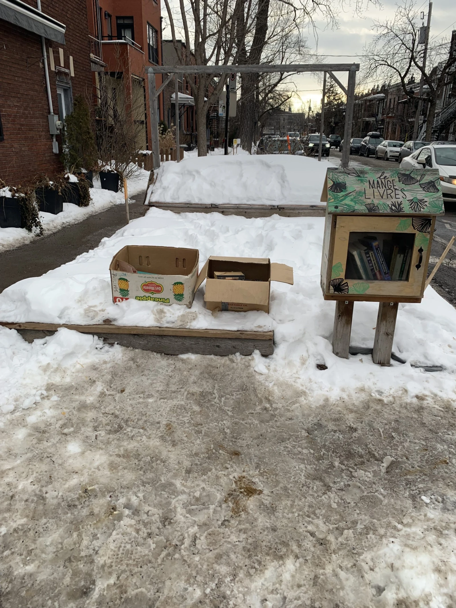 Au coin Drolet/Castelnau, quelqu’un est aussi venu porter plusieurs caisses de livres d’une autre époque écrits dans la langue de Shakespeare, qui ont tragiquement pourri sous la neige pendant plusieurs semaines.