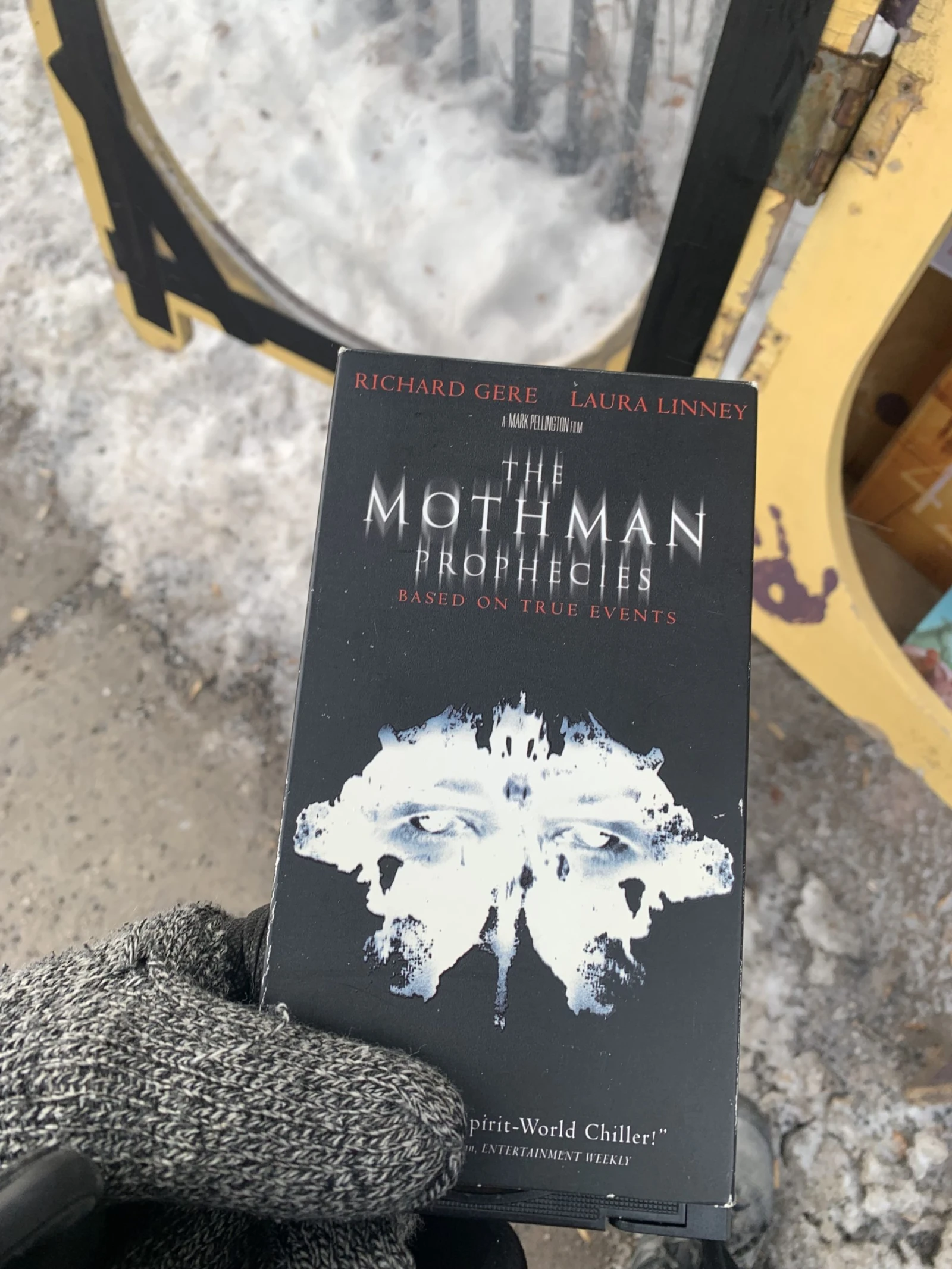 Une cassette VHS. The Mothman Prophecy est un excellent film d’horreur, mais vous n’avez pas besoin de vous racheter un magnétoscope sur Marketplace pour le regarder. C’est disponible en location un peu partout en ligne. C’est de la culture, mais le support technologique est questionnable.