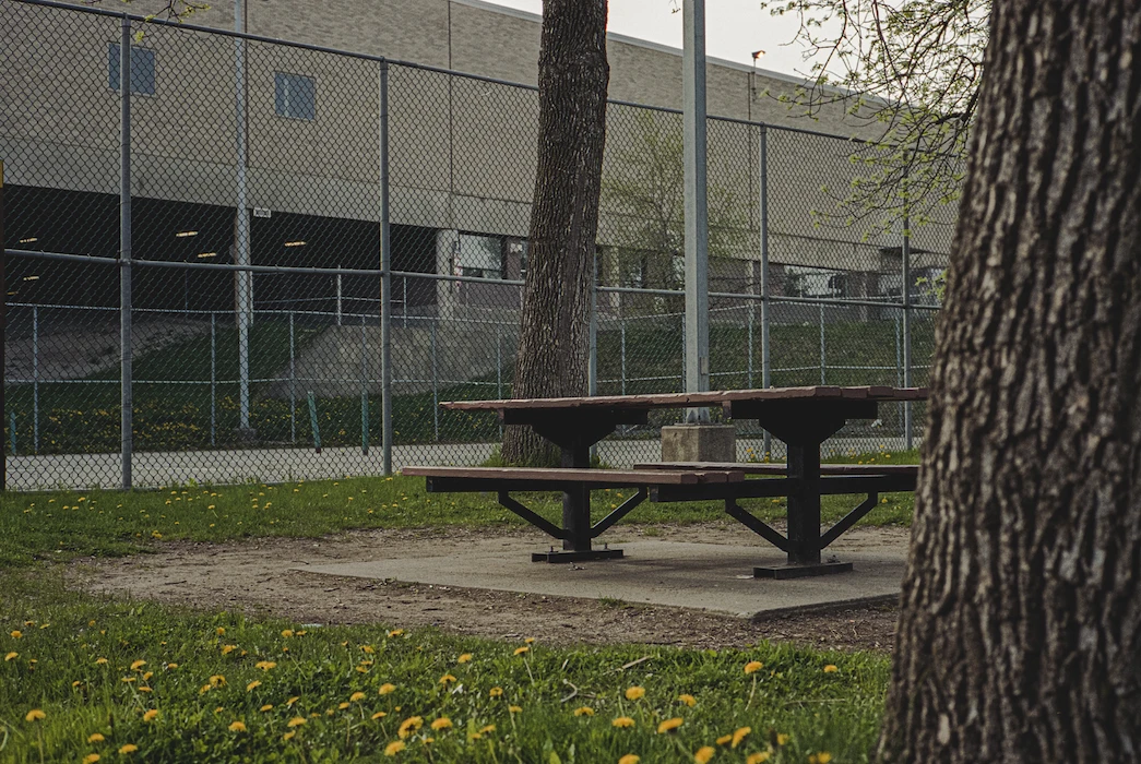 J’entre dans le parc Alfred-Élie-Dufresne sans véritable repère. Je passe devant une patinoire, une piscine encore vide, un tunnel recouvert de graffitis. Je m’approche du terrain de tennis et m’arrête devant la table de pique-nique en sortant mon cellulaire.