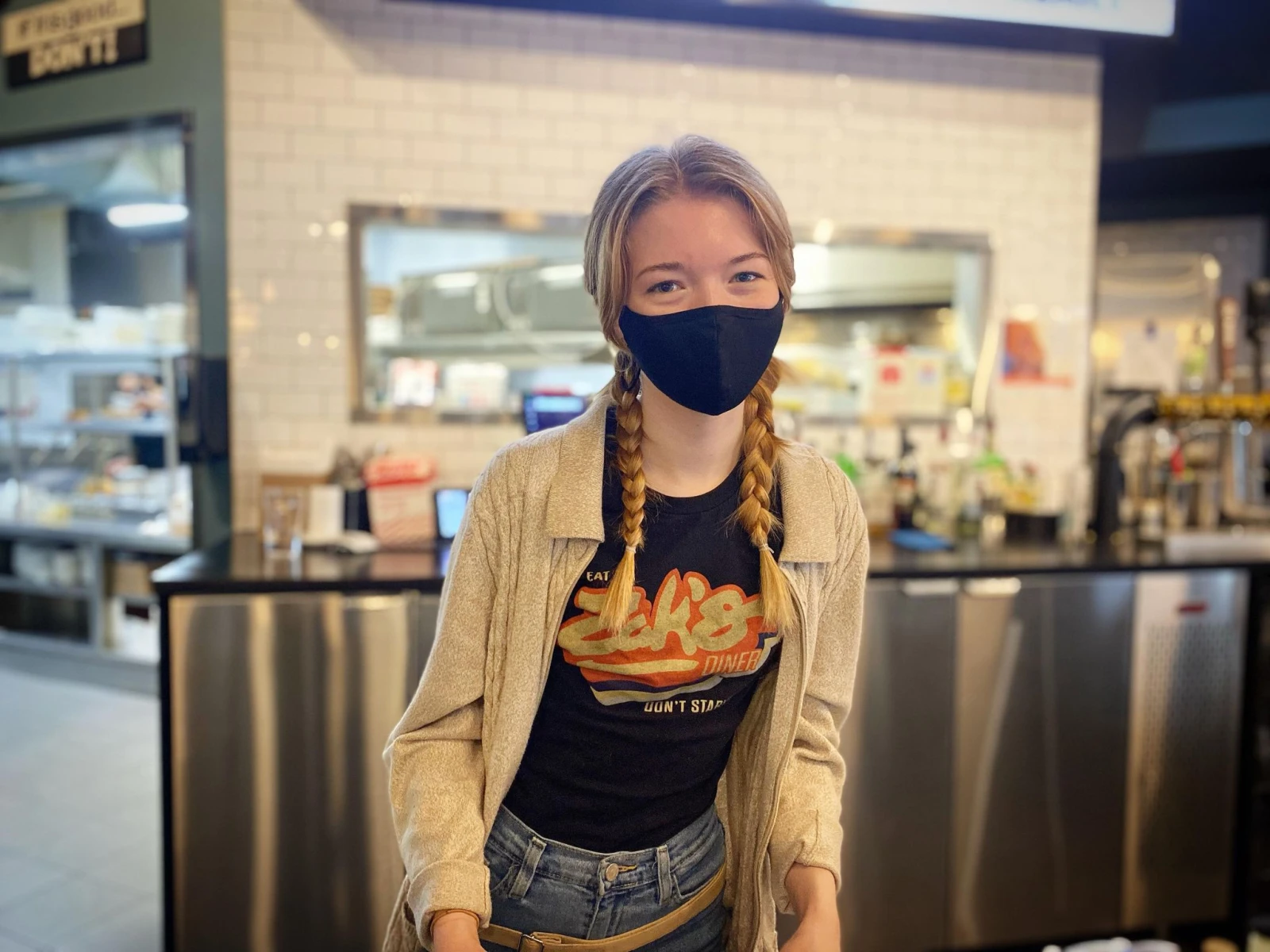 Je me glisse derrière la banquette du Zak’s Dinner pour le lunch. La serveuse vient prendre ma commande, avec son masque. Un club sandwich avec une entrée de soupe aux champignons plus tard, Tamara m’explique que le port du masque est à la discrétion du staff, mais que la plupart le conservent par respect pour la clientèle assez âgée. Elle ajoute que les client.e.s exigent même parfois que les serveuses portent leur masque.