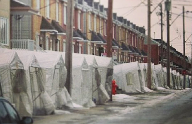 Pourtant, l’argument ne semble pas suffisant. En 2013, dans une société reconnue pour sa créativité, ses artistes et la vivacité de son design, dans une métropole nommée « ville de design » par l’Unesco (ce n’est pas rien), il y en a qui sont prêts à endurer les pires horreurs pour la simple et bonne raison que « c’est plus facile ». (notez que ce n’est pas aussi facile qu’on le prétend. Il faut quand même les installer, les déneiger pour qu’ils ne s’effondrent pas, dégager leur entrée bloquée par le mur de neige compacte laissé par les charrues,… et gare aux grands coups de vent!)