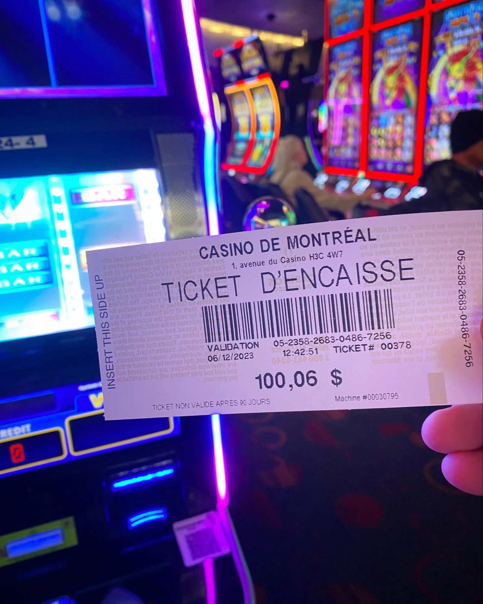 En l’aidant, il m’explique faire partie d’un groupe de l’âge d’or de Sorel, en visite pour assister à un spectacle de Noël. Leur autobus est arrivé en avance, pour permettre aux gens de gambler un peu. « Je ne suis pas joueuse, moi! », m’assure une dame de leur groupe, en prenant place devant la machine à côté de moi.