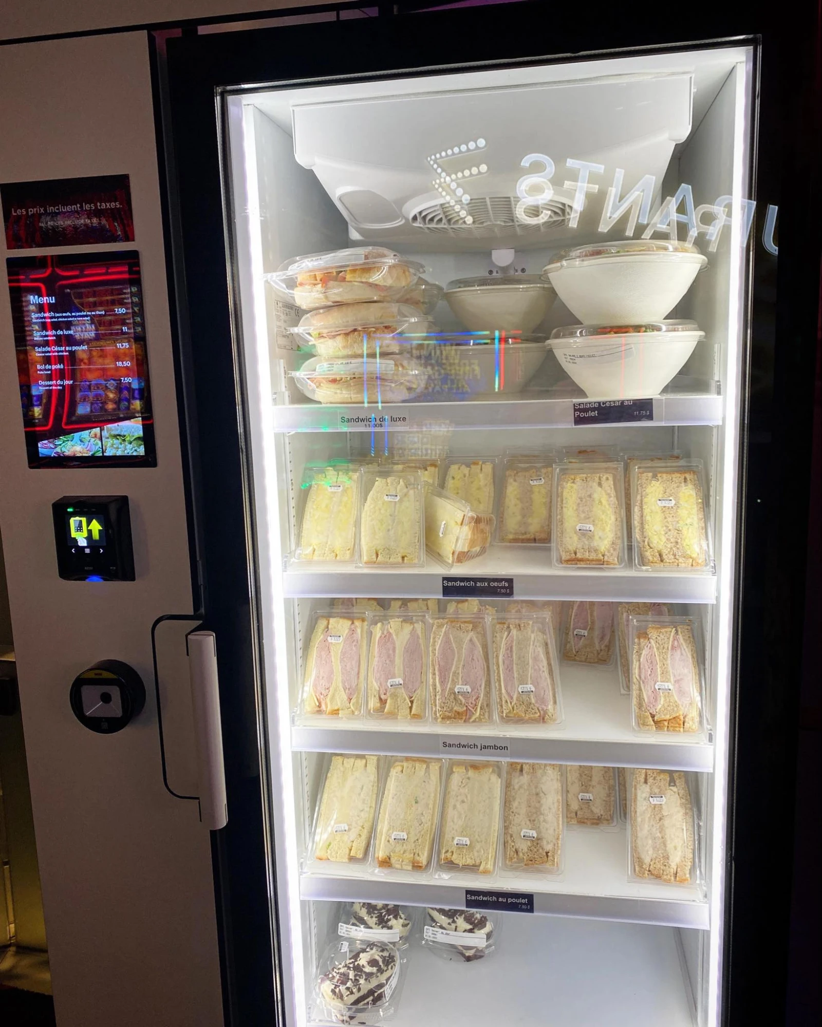 Je me rabats sur une machine distributrice de sandwich au jambon, à côté de celle à pizza.