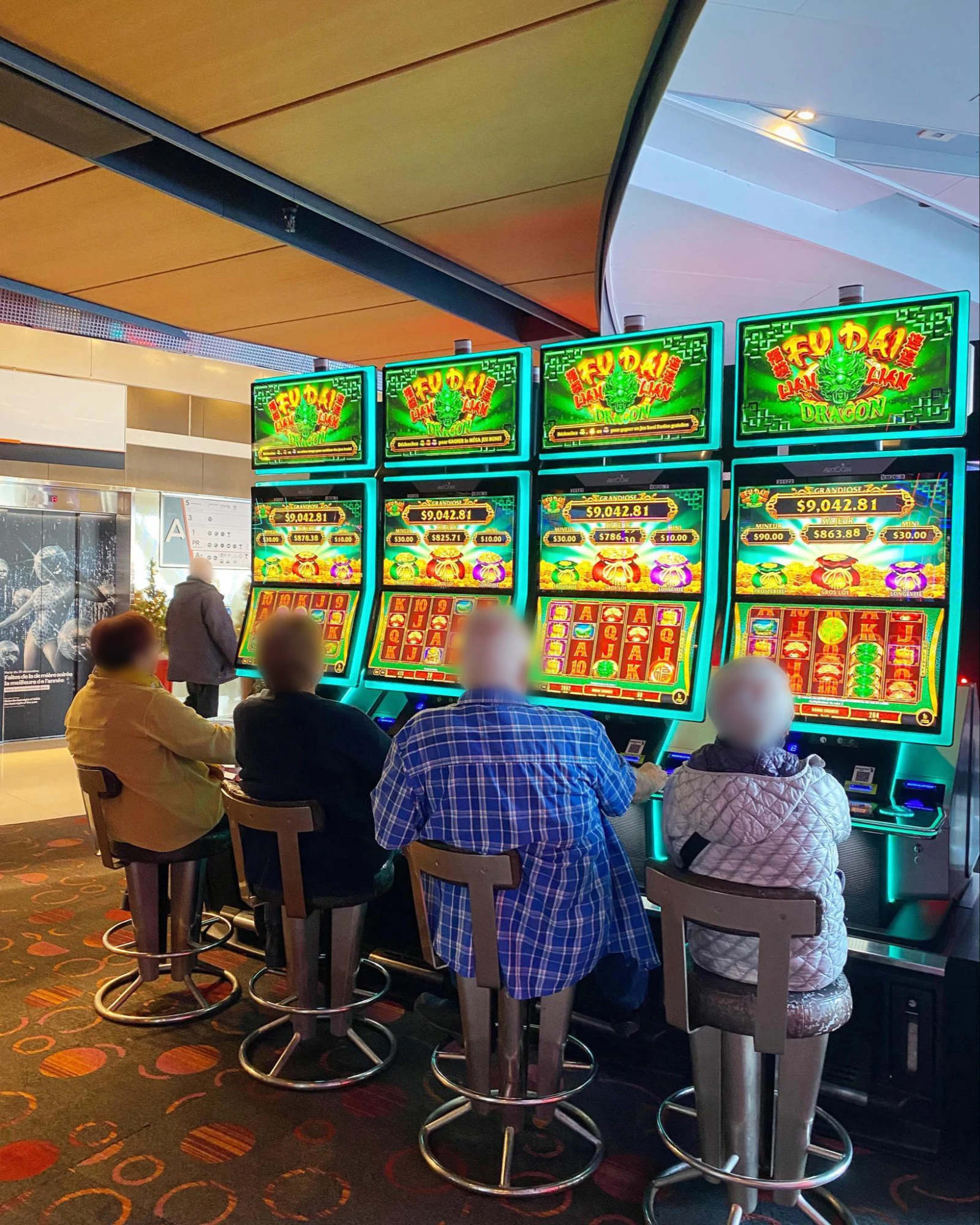 Osti! Je gagne presque 100$ du premier coup. Je lâche un cri de vainqueur, à l’instar d’un trio de dames âgées tout près qui s’amusent et tapent des mains. Il est midi et je réalise que c’est la première fois que je vois des gens qui ont l’air de s’amuser.