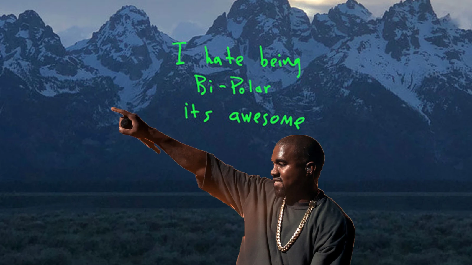 Les confidences du rappeur de Chicago se poursuivent dans la deuxième chanson, Yikes, alors qu’il avoue pour la première fois être bipolaire. Cette déclaration fait d’ailleurs écho à la pochette de l’album, que Kanye a pris la veille du lancement de l’album avec son iPhone, sur laquelle on peut voir des montagnes du Wyoming avec l’inscription I hate being bi-polar it’s awesome.
