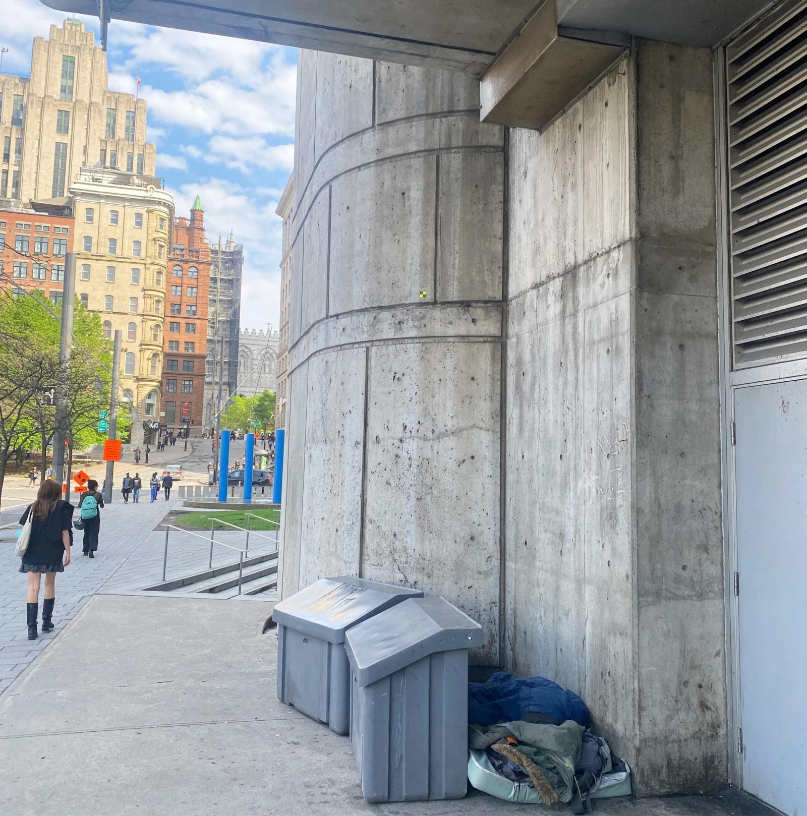 Je me suis rendu à l’adresse de la rue Saint-Laurent, en face d’un boulevard partiellement éventré, près de l’intersection de La Gauchetière.