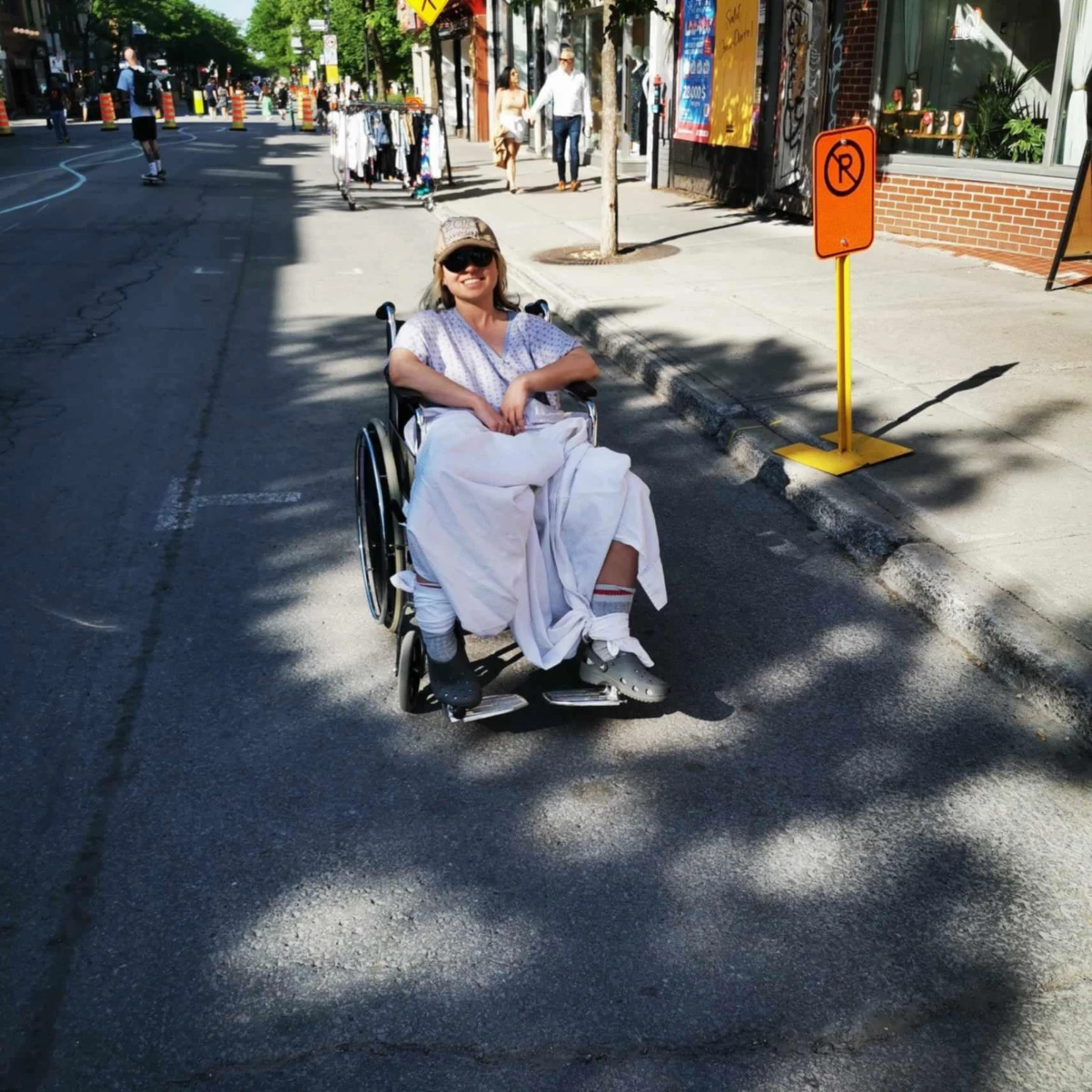 Cinq jours passent. À un moment, une médecin m’examine et me donne mon congé. Je vais avoir besoin d’une chaise roulante et d’un proche aidant pour mon chien et moi. Je me rappelle que je voulais écrire un article sur le campement McGill, sur la résistance, sur la solidarité entre les peuples. C’est dead. Les séquelles de mon traumatisme crânien vont durer plus longtemps que tous les campements de Montréal. Un jour, je vais réessayer.