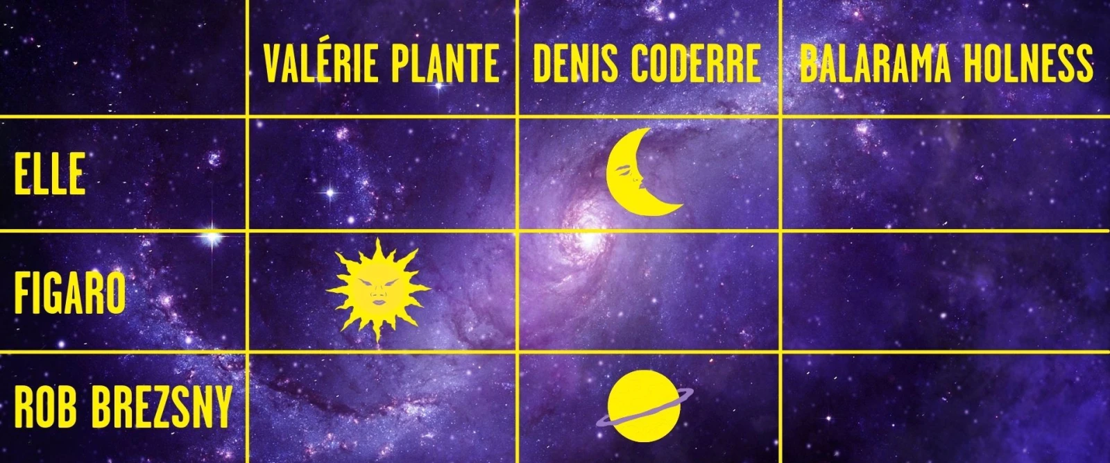 Ensuite, nous avons longuement analysé les horoscopes de chacun.e afin de vérifier s’ils pointaient vers une victoire ou une défaite.