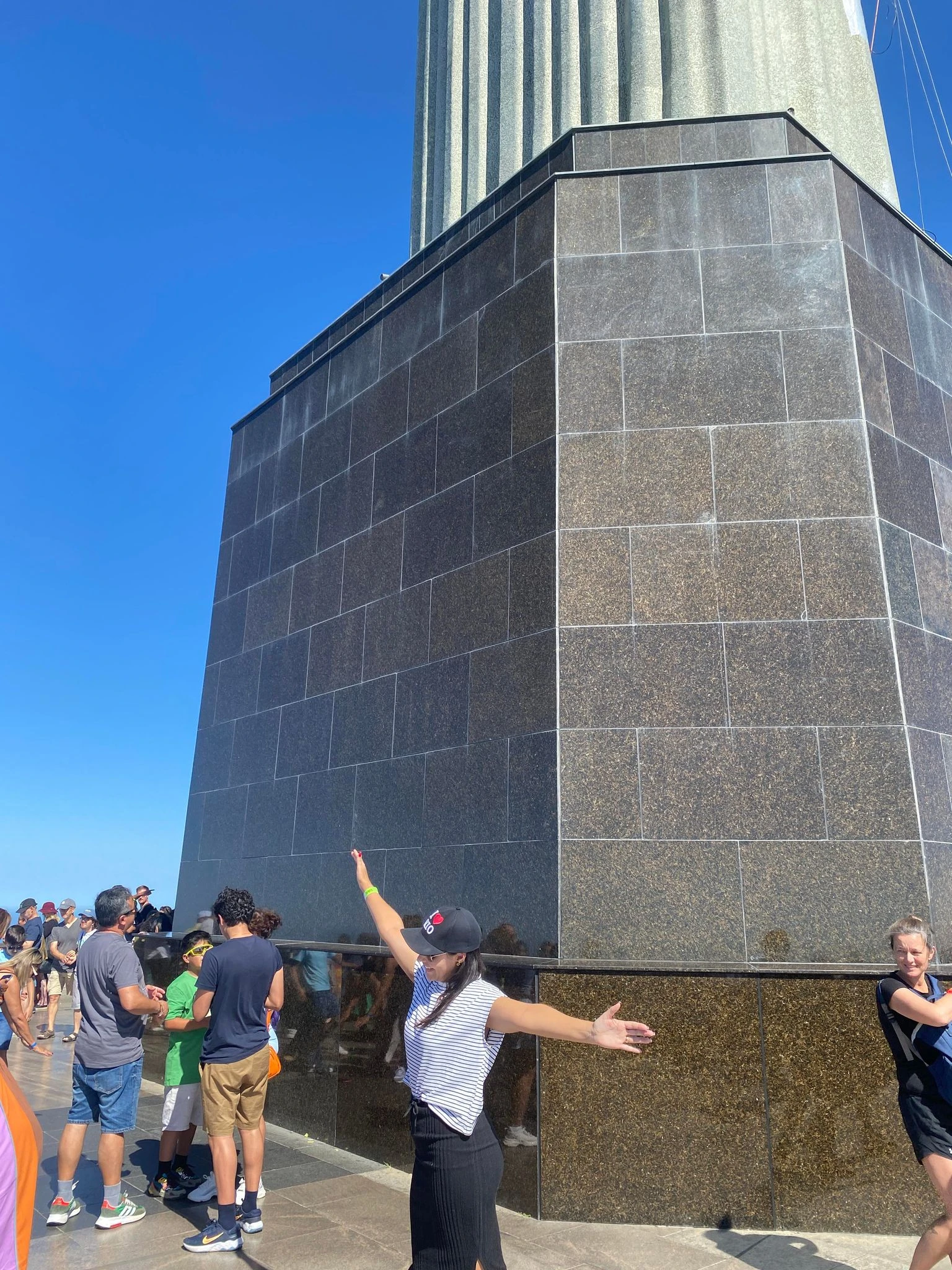 Une fois à destination, on grimpe quelque 200 marches jusqu’au sommet. Contrairement à la portion « seul dans le désert » de son existence, Jésus se dresse ici en compagnie de milliers de visiteurs agglutinés les uns sur les autres. Il faut presque jouer du coude pour circuler autour de la statue, ce qui résulte en une expérience que les plus jovialistes pourraient qualifier de « fort désagréable ».