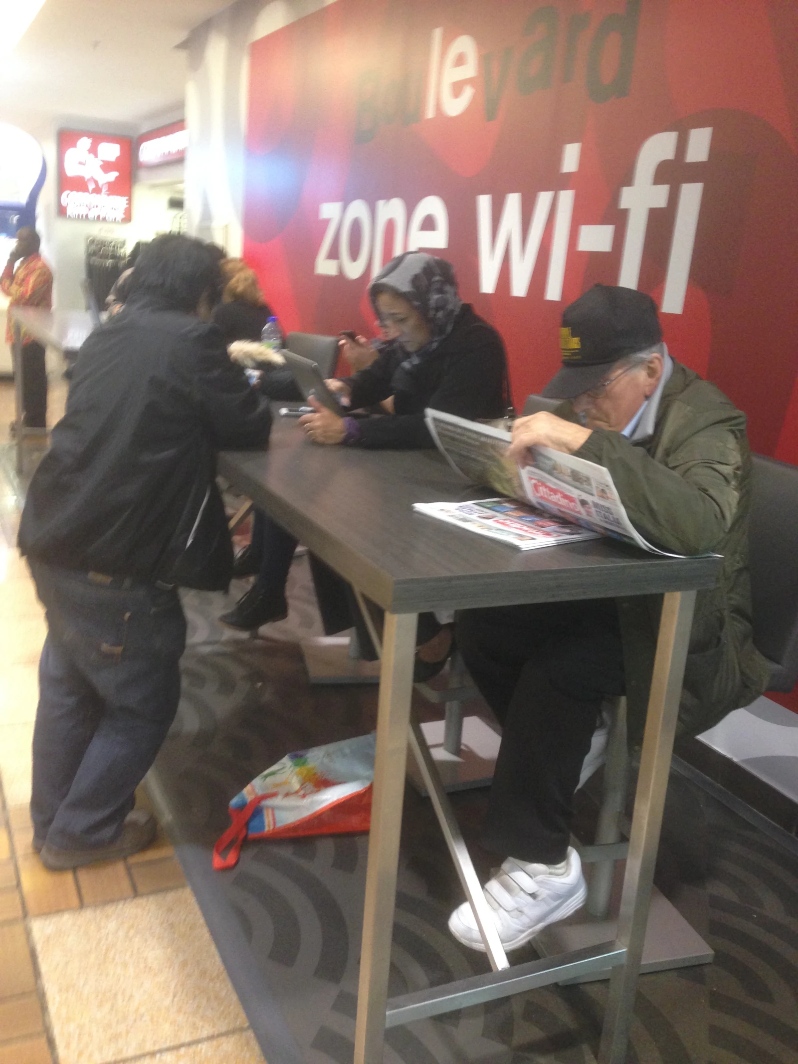 En plus d’être branché à l’électricité, le Boulevard est branché à internet — comme en témoigne cette zone wi-fi, où sourires et joie de vivre s’entremêlent avec une belle vivacité.
