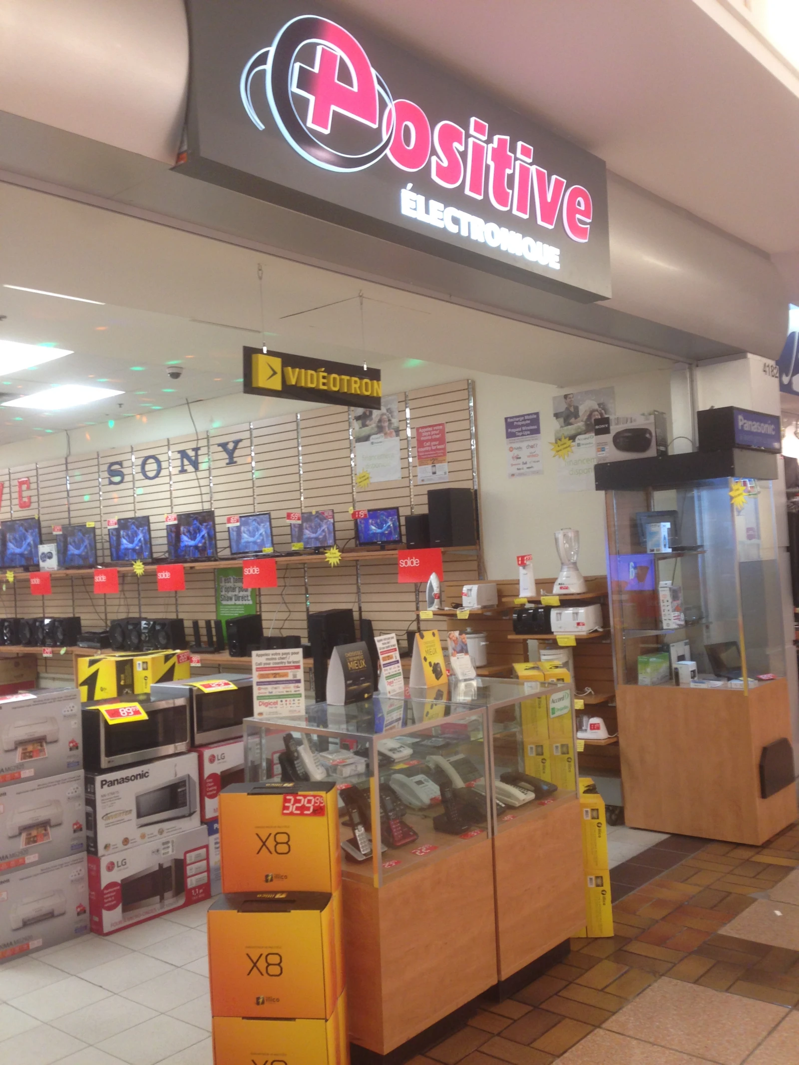 D’ailleurs, la joie de vivre s’empare de tout le centre d’achats, même de ce magasin d’électronique fort optimiste.