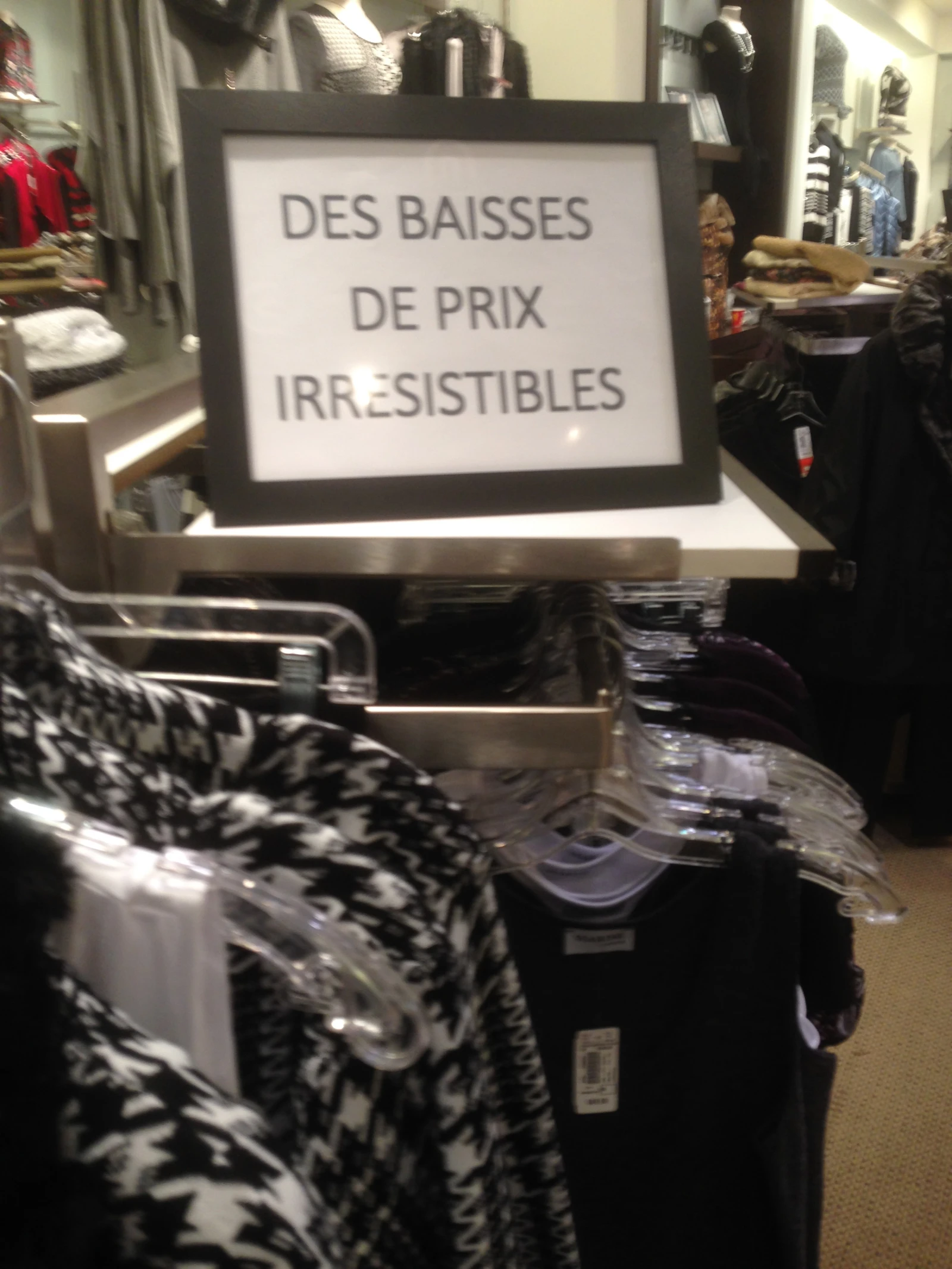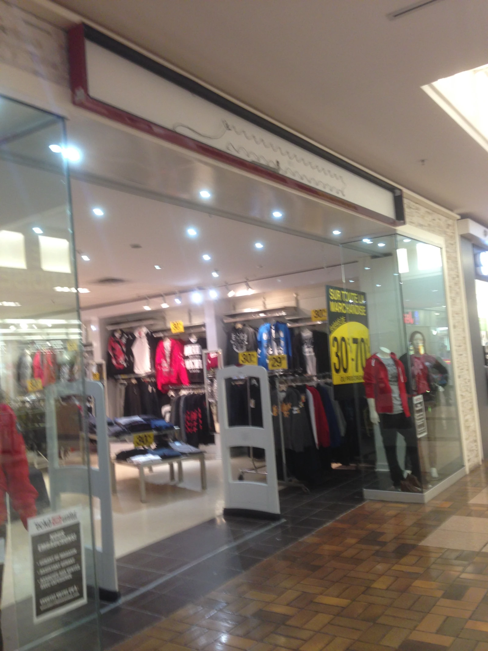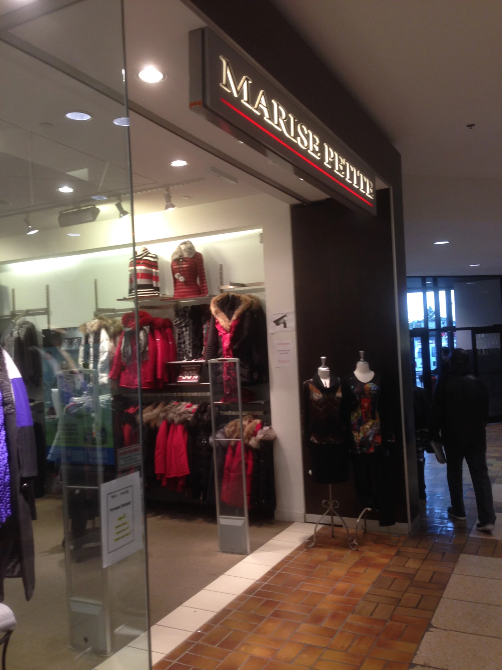 Marise y va également d’une façon assez directe sur son enseigne. En rentrant, ça se peut que tu penses qu’elle est dans le back-store, alors qu’elle est simplement en face de toi, cachée par un rack de chemises de nuit.