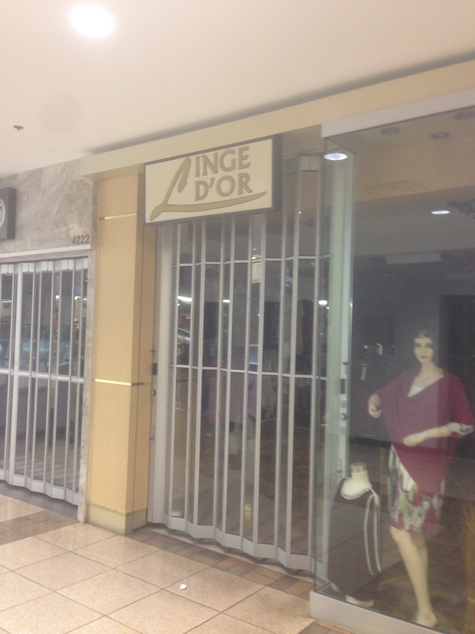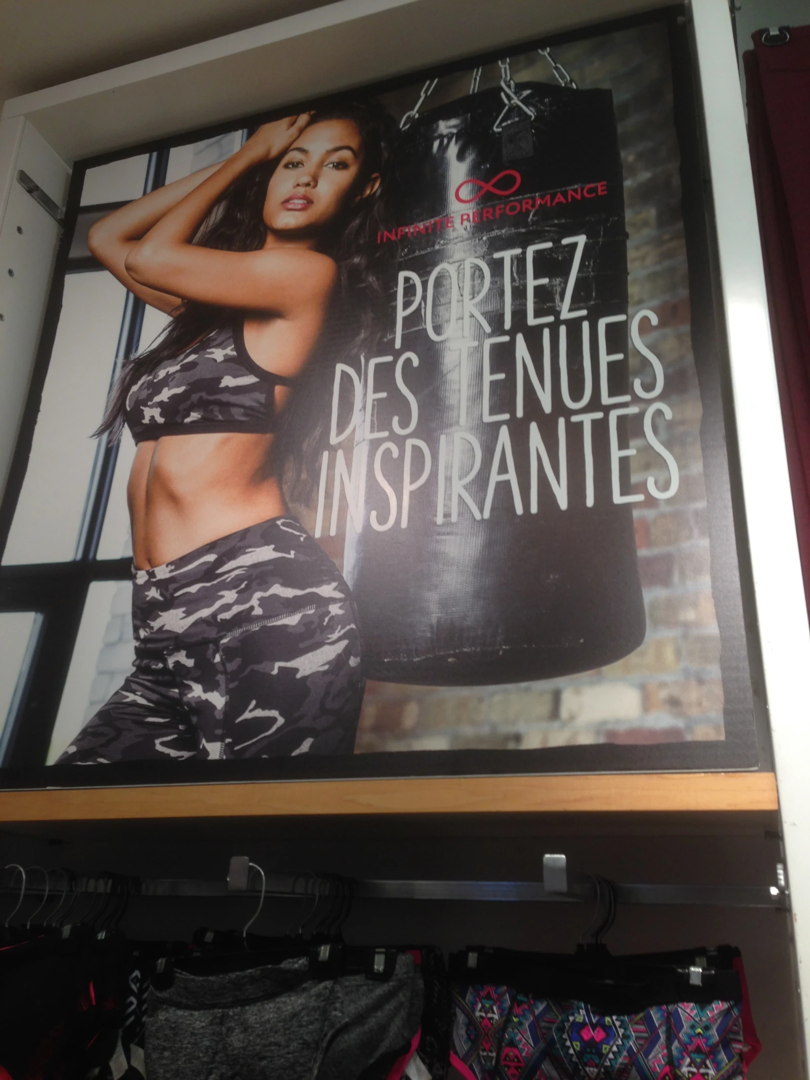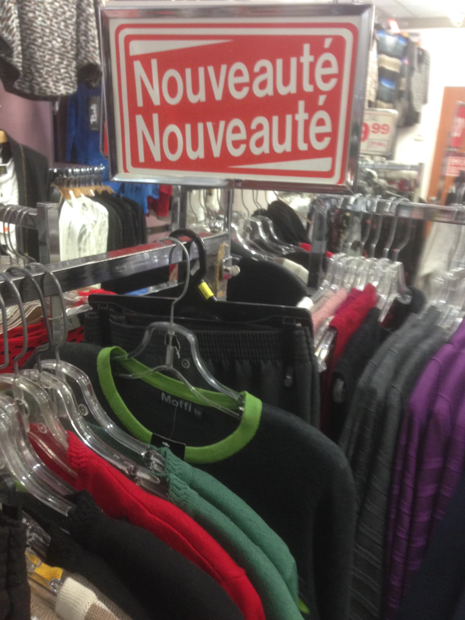Marise y va également d’une façon assez directe sur son enseigne. En rentrant, ça se peut que tu penses qu’elle est dans le back-store, alors qu’elle est simplement en face de toi, cachée par un rack de chemises de nuit.