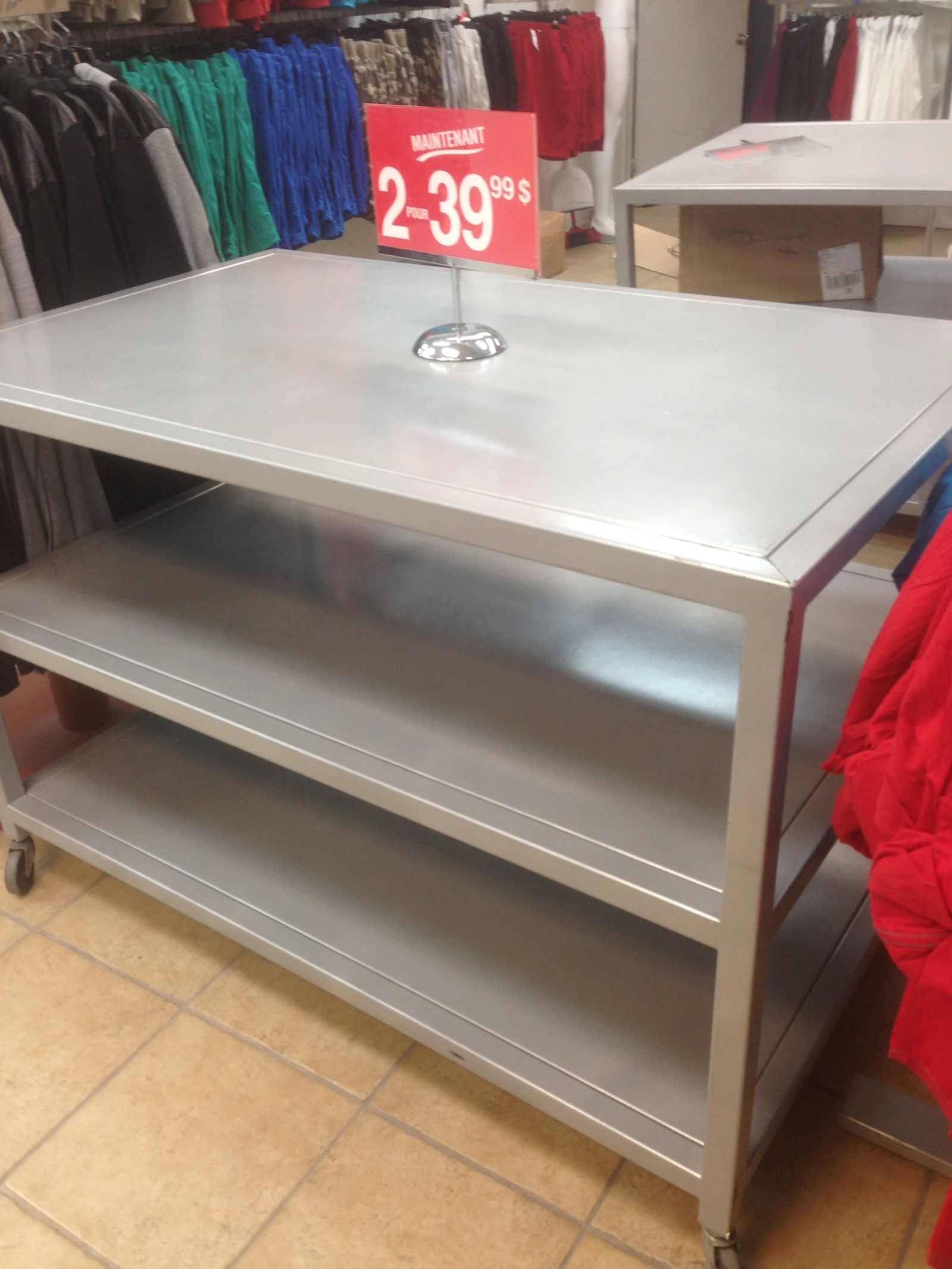 Parlant d’international, l’I.N.C. International propose une aubaine à tout casser : deux racks trois étages en métal pour 40 piasses.