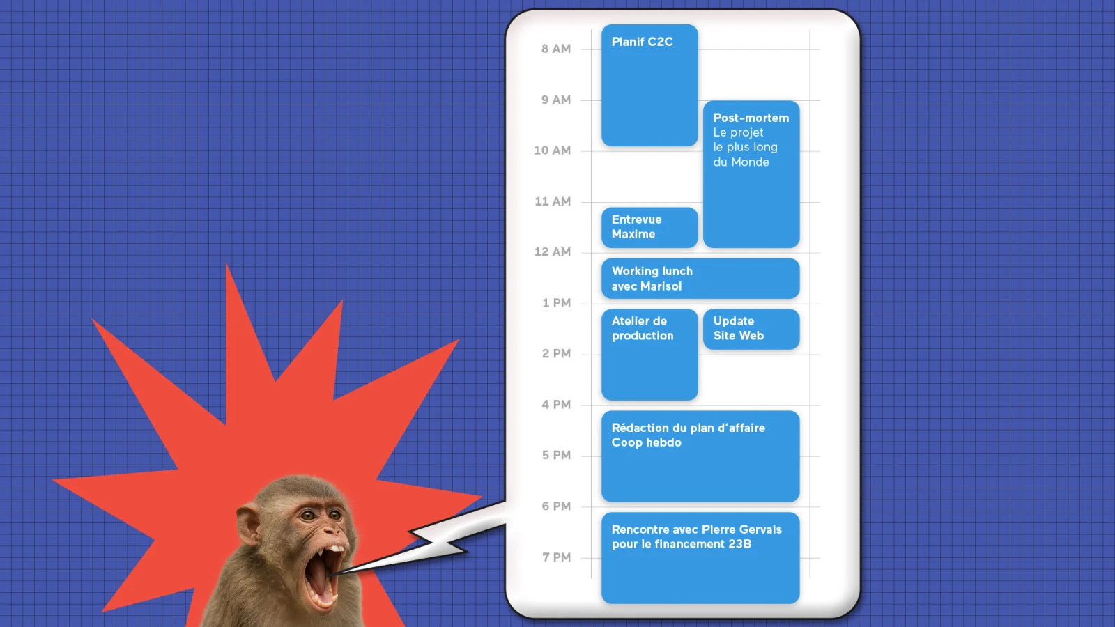 « Désolé, j’ai pas le temps de jaser : je suis entre deux réunions, j’ai 87 courriels non lus, [prend 10 min pour continuer la liste]… »