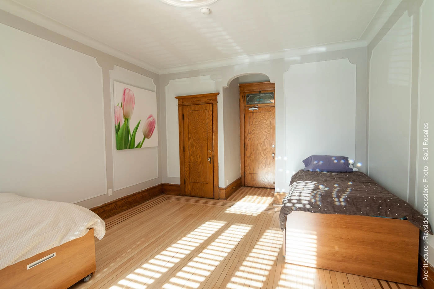 À l’heure actuelle, seulement sept des vingt-quatre places sont occupées. Les chambres sont spacieuses, avec des planchers de bois lustrés et des lits capitaines. Le deuxième étage abrite quatre logements autonomes, tous occupés. Il y a aussi quelques chambres au sous-sol, près de la garderie.