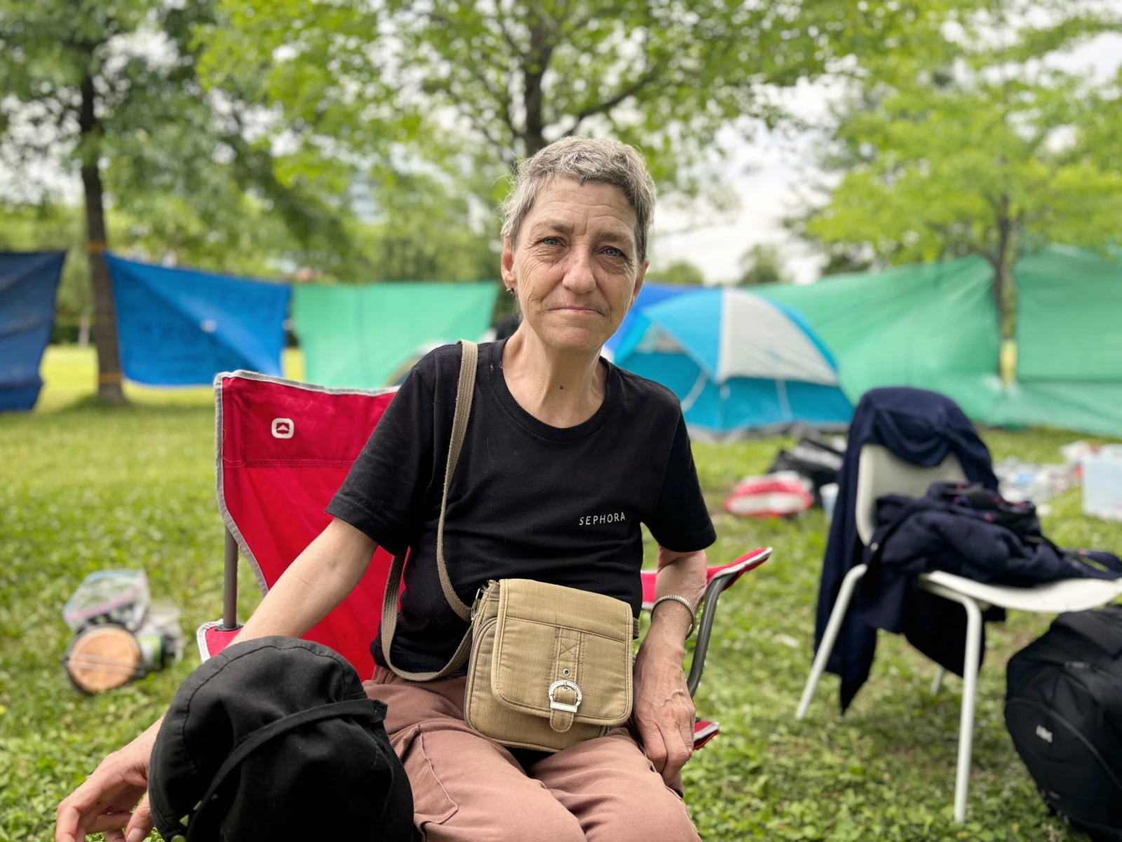 Le son d’un zipper en arrière-plan. Une dame sort d’une des seules tentes du campement naissant. Sarah, 58 ans, a été évincée de son logement la veille. C’est la deuxième fois qu’elle se retrouve à la rue. Elle a entendu parler d’un nouveau campement à proximité et a atterri ici, baptisant les lieux sans le savoir. « Je veux que les gens sachent que ça peut arriver à tout le monde de se ramasser dans la rue! », plaide la dame.
