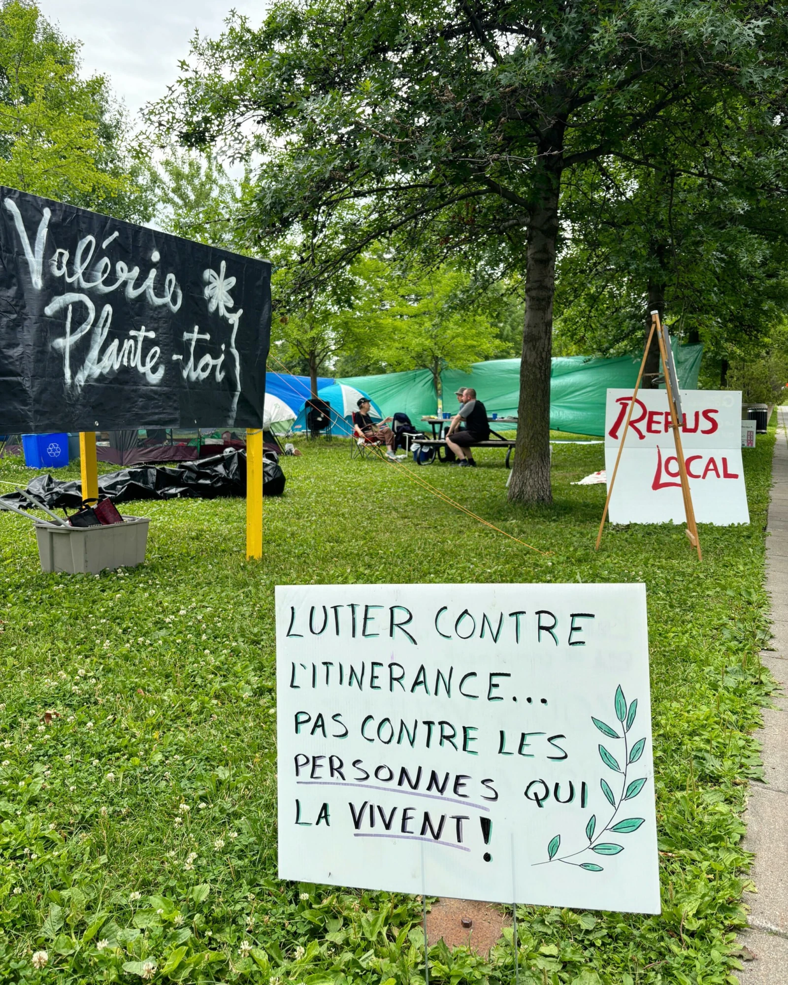 À l’instar du Refus Local, le RAPSIM réclame également un arrêt immédiat des démantèlements de campements à Montréal, en plus d’un investissement massif dans le logement social. « Le plus gênant, c’est que 90% des démantèlements se déroulent dans Ville-Marie, l’arrondissement de la mairesse Plante et du responsable de l’itinérance au comité exécutif Robert Beaudry », note Léandre, martelant qu’avoir un toit sur la tête, même s’il est en toile, est la moindre des choses.