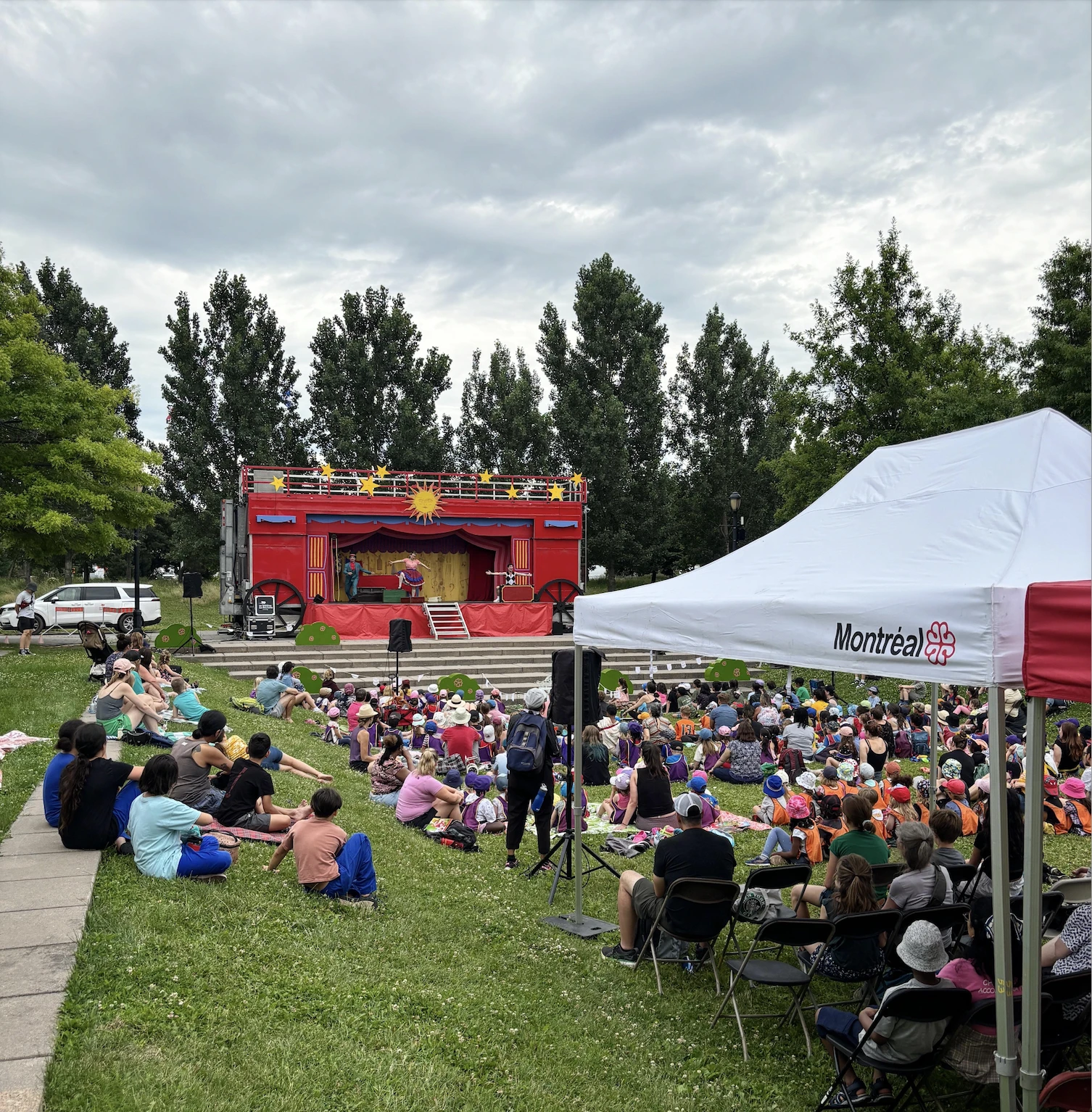 Au loin, des enfants piaffent d’enthousiasme devant le début de la pièce Fortissimo!, présentée par le théâtre La Roulotte.