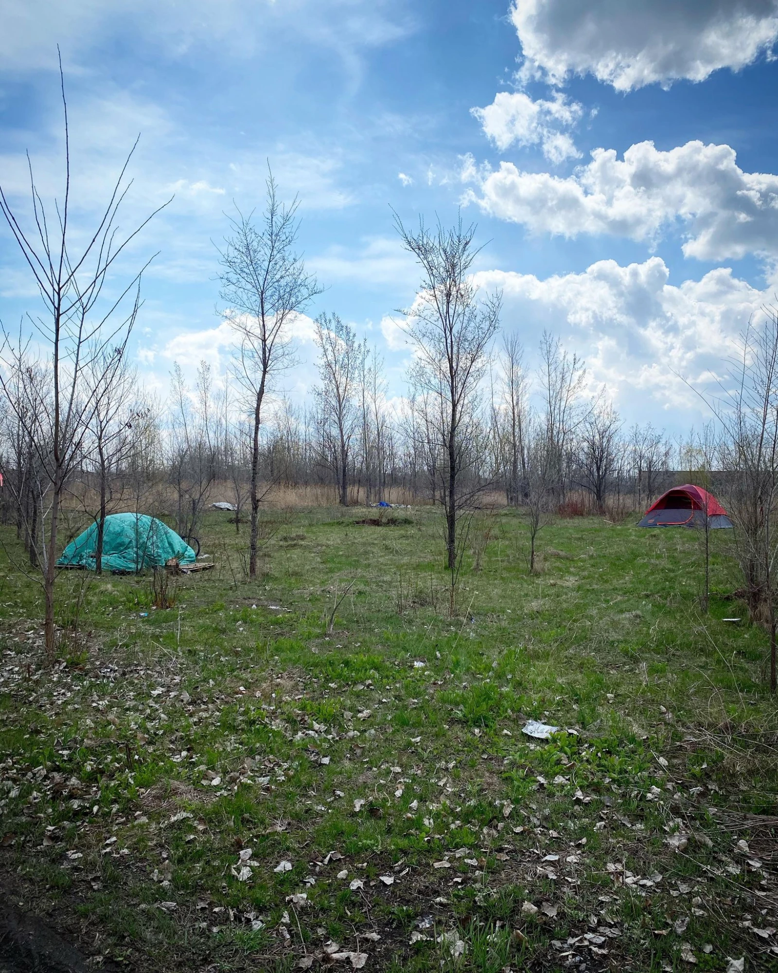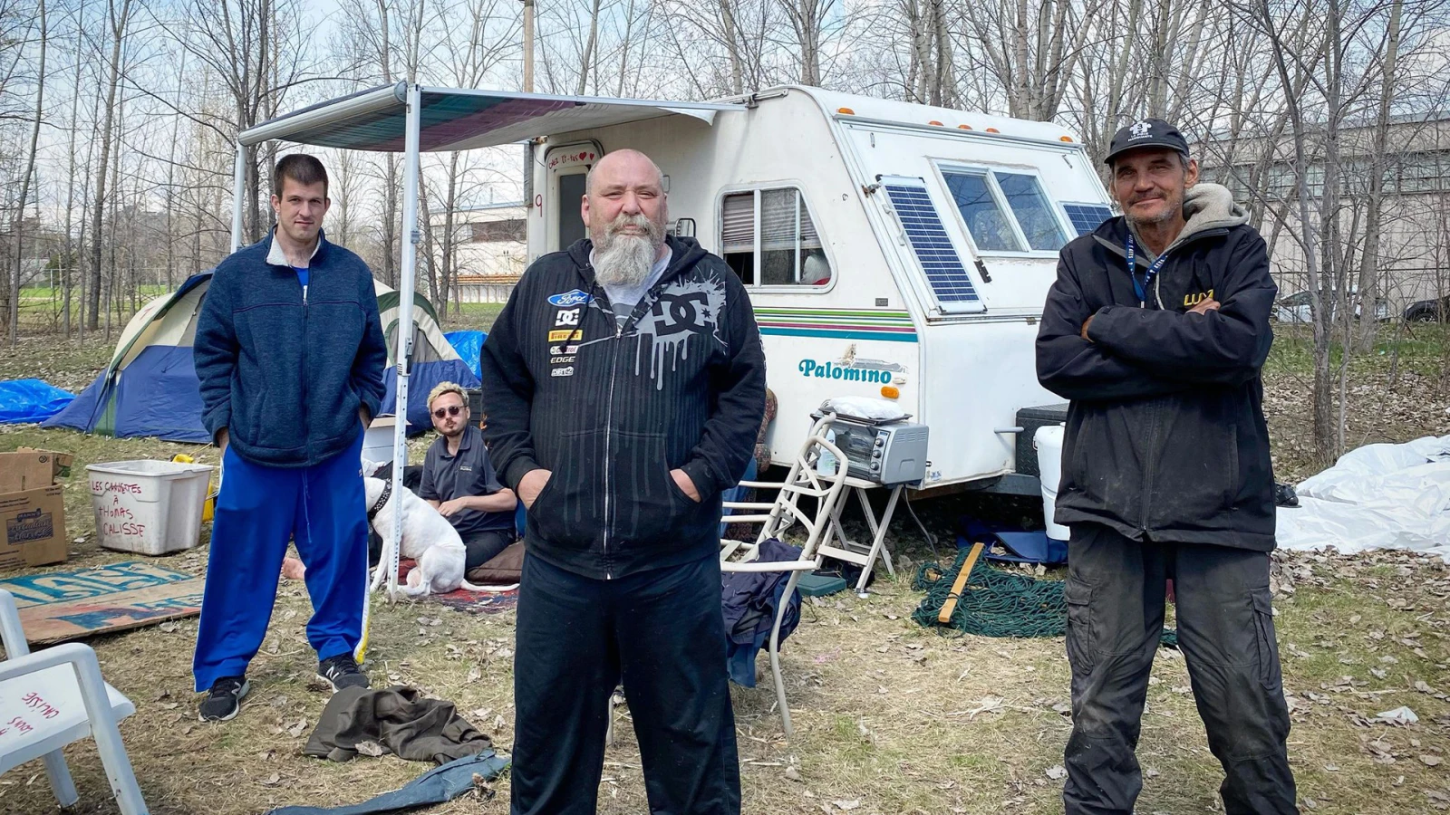 Pour l’heure, une dizaine de personnes sont éparpillées dans des tentes et des roulottes sur le vaste site, un champ broussailleux voisinant une entreprise de la rue Hochelaga.