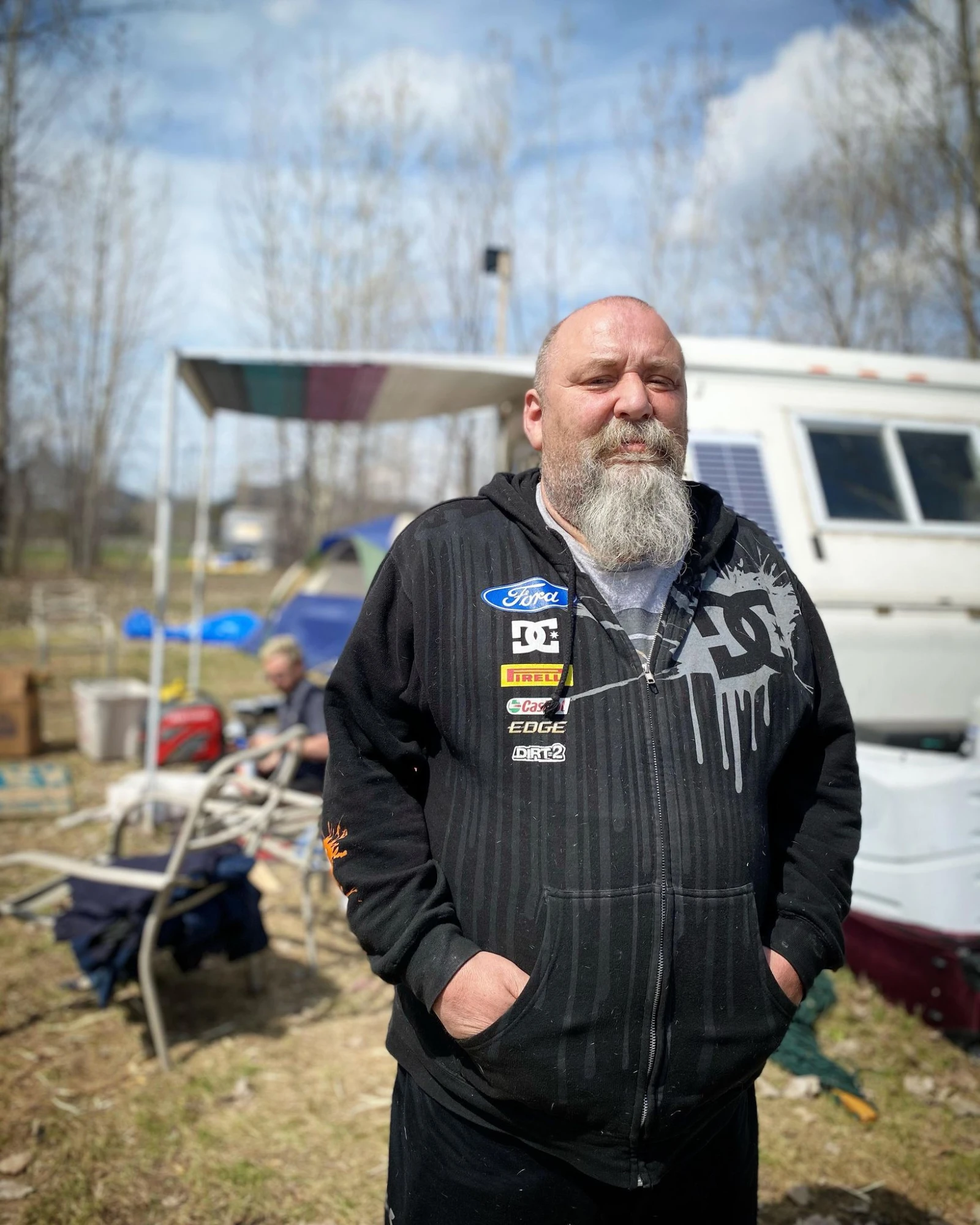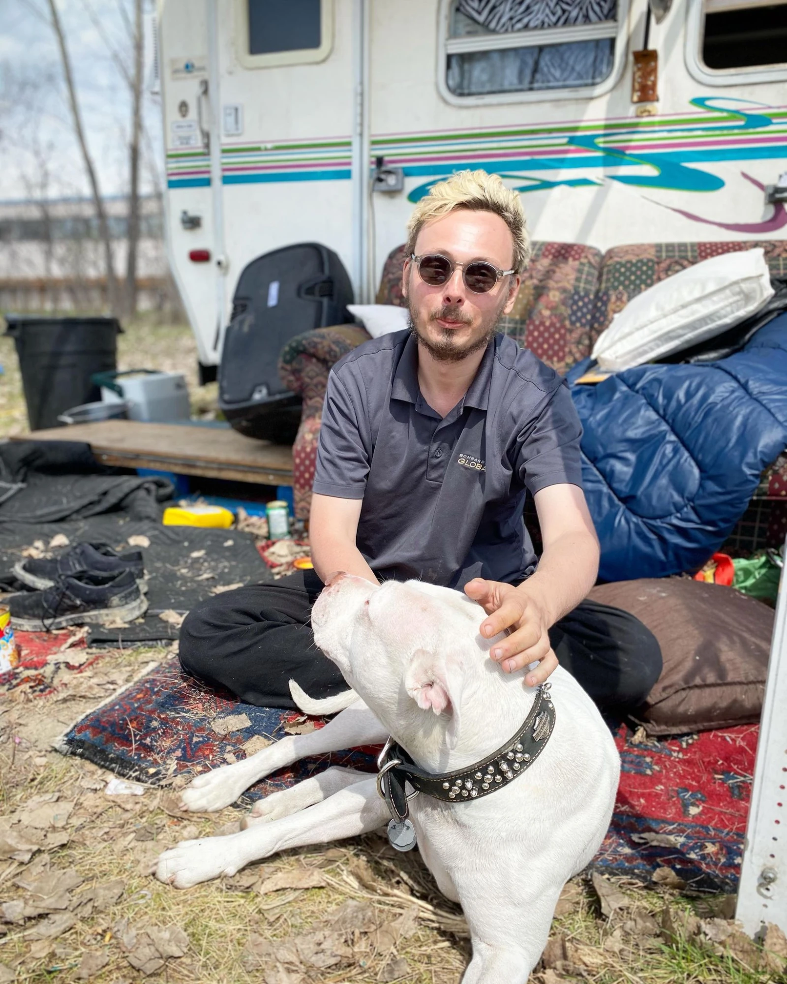 Dans le sofa devant sa roulotte, Martin Roy flatte Misha, qui fait sa guidoune. Arrivé la veille au campement, il ne tarit pas d’éloges envers ses nouveaux colocataires. « J’ai jamais vu du monde accueillant de même », louange le jeune homme originaire de Longueuil, portant des verres fumés trouvés par terre. Il a partagé une tente, avec un autre compagnon d’infortune. « La meilleure nuit de ma vie! », souligne Martin, qui raconte avoir marché nu-pieds plusieurs kilomètres pour se rendre ici. Lorsqu’on lui raconte comment il a atterri ici, sa réponse est évasive. «Je me suis rendu compte que j’étais un robot ».