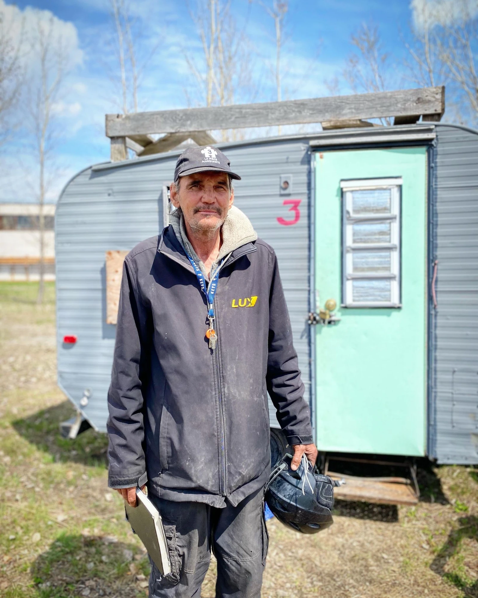 Un peu plus loin dans le champ, on aperçoit la roulotte de Louis Rouillard, le premier arrivé ici il y a cinq jours. Avant ça, il a passé l’hiver dans le stationnement du YMCA, où je l’avais d’ailleurs rencontré au début de l’année.