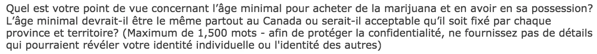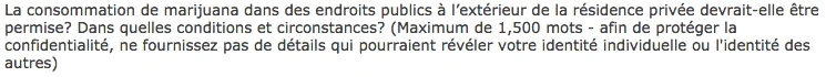 Jusqu’au 29 août, vous pouvez répondre à la consultation publique de Santé Canada concernant la légalisation de la marijuana : À partir de quel âge devrait-on avoir le droit de fumer? Dans quels lieux? Qui devrait dealer?