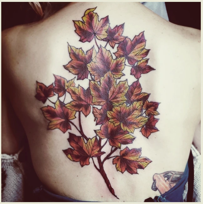 Parmi ces gens willing, j’ai contacté sur Skype Colin Smith, un gars de 25 ans qui habite à Barrie, en Ontario. Après six années d’études en psychologie à l’Université Carlton d’Ottawa – « un peu plus longtemps que j’aurais dû mais c’était le fun anyways » -, Colin est aujourd’hui intervenant dans un centre de crise en santé mentale. Il a l’air d’un gars du Plateau avec ses cheveux bruns qui dépassent sous sa tuque grise, sa barbe de quelques jours et son allure relaxe, mais il a une immense feuille d’érable rouge tatouée juste en dessous de son épaule droite. Je trouve son tatouage très réussi, on dirait une véritable feuille tombée de l’arbre et posée délicatement sur sa peau.