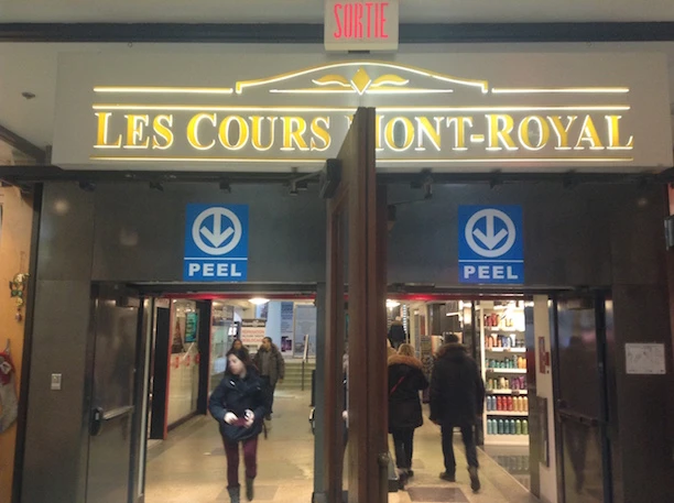 La stratégie marketing ultime des Cours Mont-Royal : obliger le novice Montréalais à passer en son centre pour sortir du métro Peel. Un vieux classique.