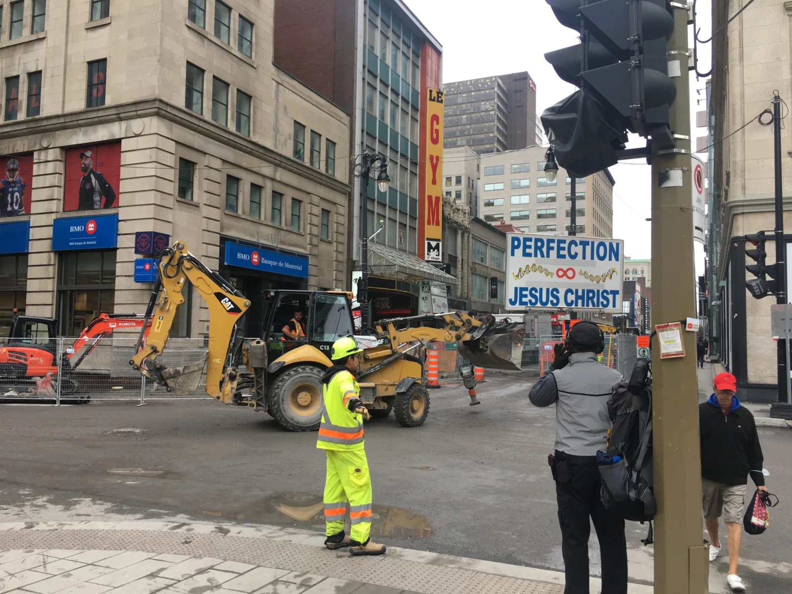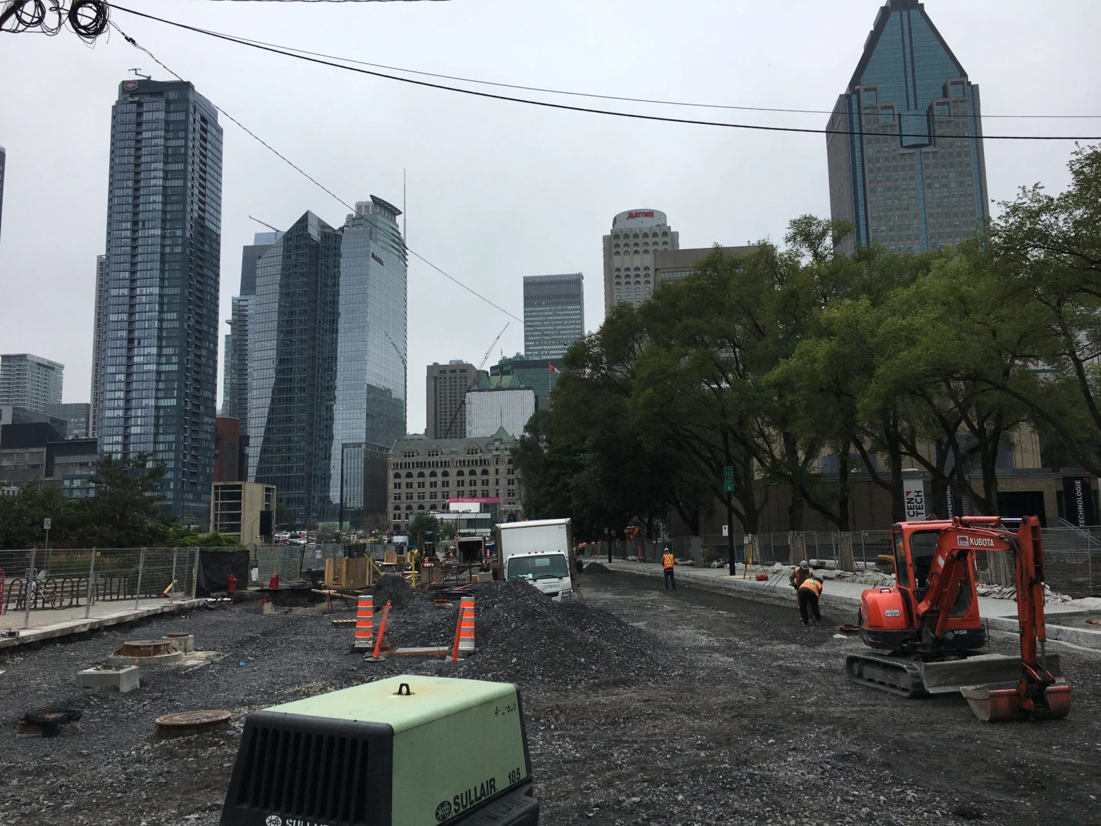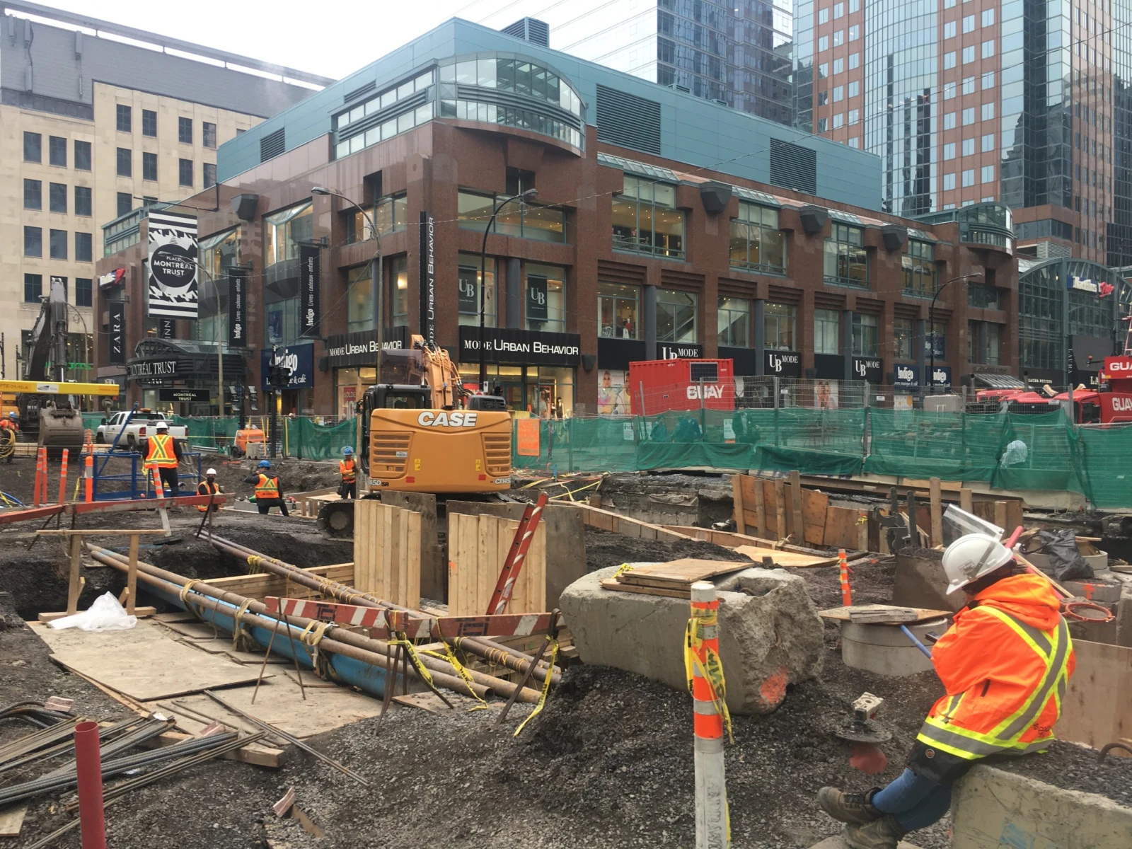 À l’angle McGill et Sainte-Catherine, on a l’impression de débarquer dans une zone de guerre après un bombardement. Les travaux d’envergure prennent toute la place.