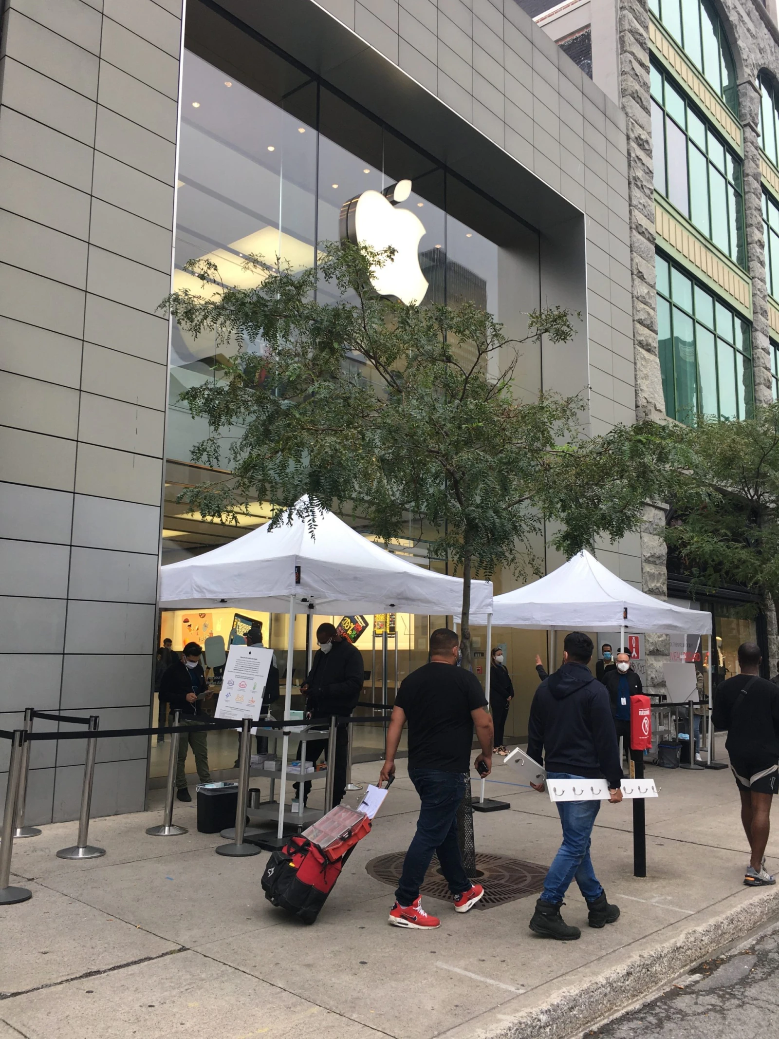 Le seul « buzz » palpable dans les environs est autour de la boutique Apple, devant laquelle il y a une file et des dispositifs de sécurité digne de l’aéroport.