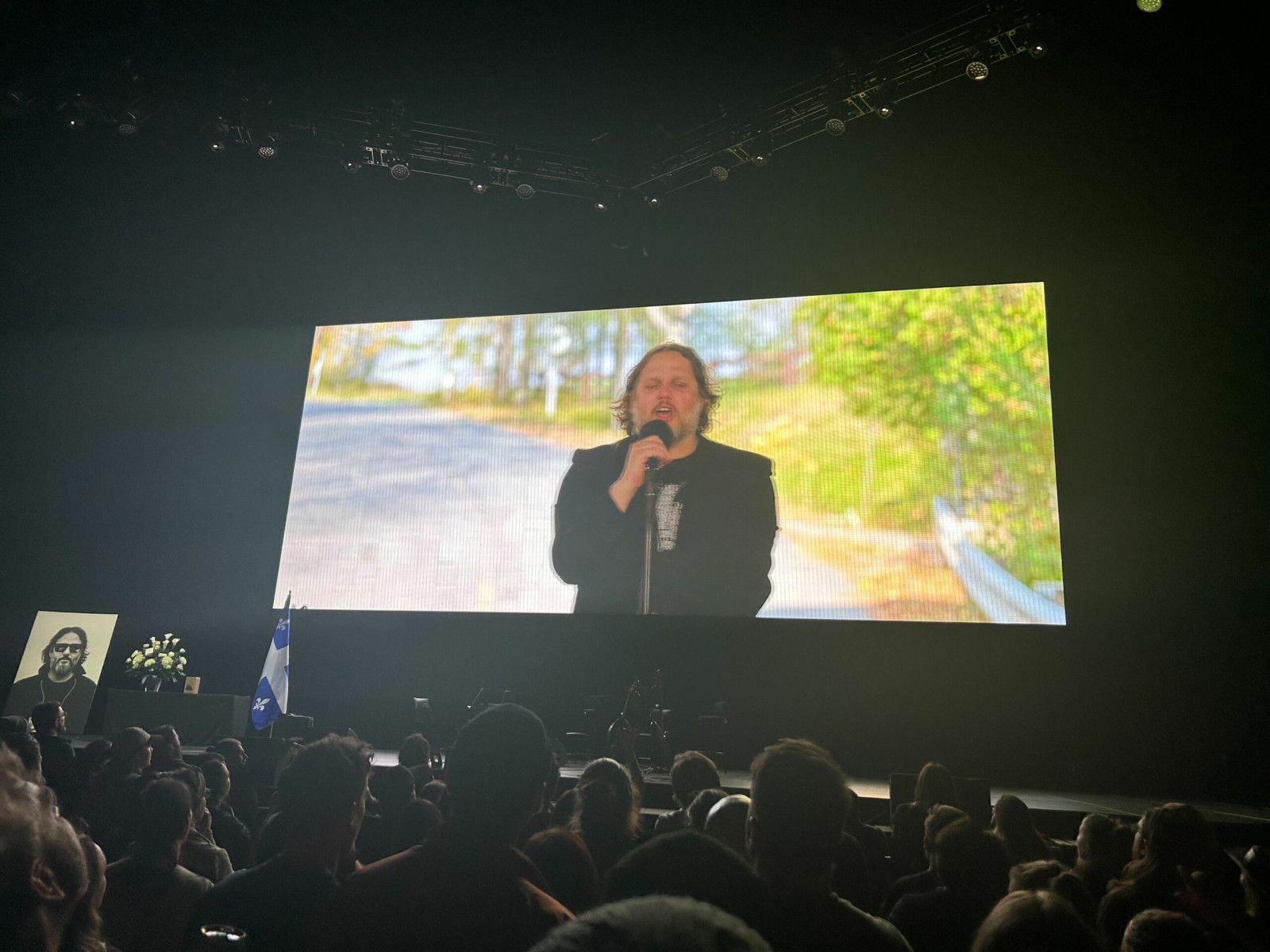 La cérémonie hommage a duré environ une heure. La deuxième moitié de la soirée était meublée par une projection du film L’Amérique Pleure dont j’ignorais sincèrement l’existence jusqu’à aujourd’hui. Il s’agit d’une série de prestation des Cowboys Fringants un peu partout au Québec, dans des décors naturels.